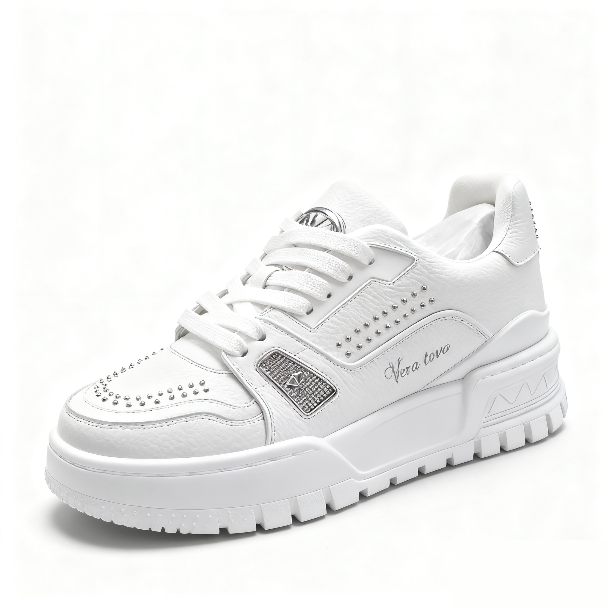 Your location:homeSHOEMAKERTrendy Men's Genuine Leather Sneakers 2025 Autumn New Collection - Breathable Casual Platform Shoes with Height Increase Design, Versatile White Athletic Shoes