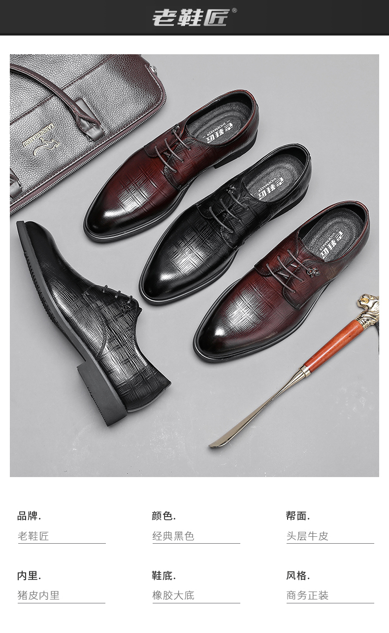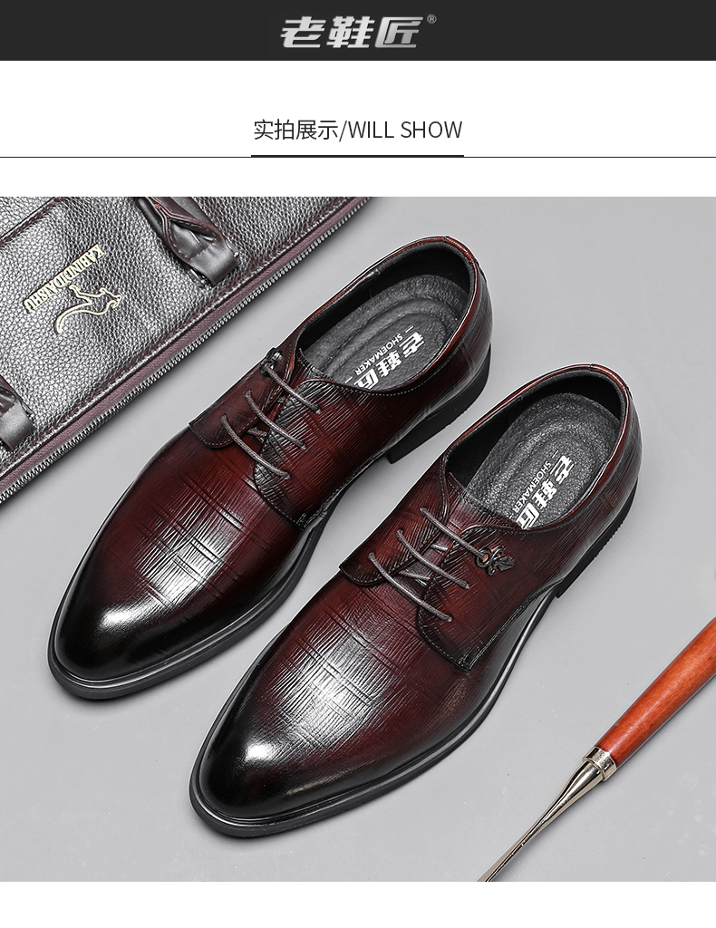 Your location:homeSHOESMITHClassic Shoemaker's New Genuine Leather Men's Lace-up Pointed Toe Casual Shoes Embossed Premium British Style Formal Business Dress Shoes