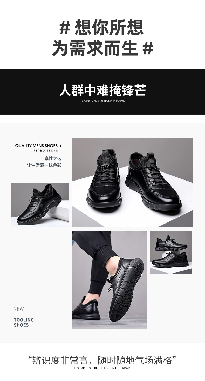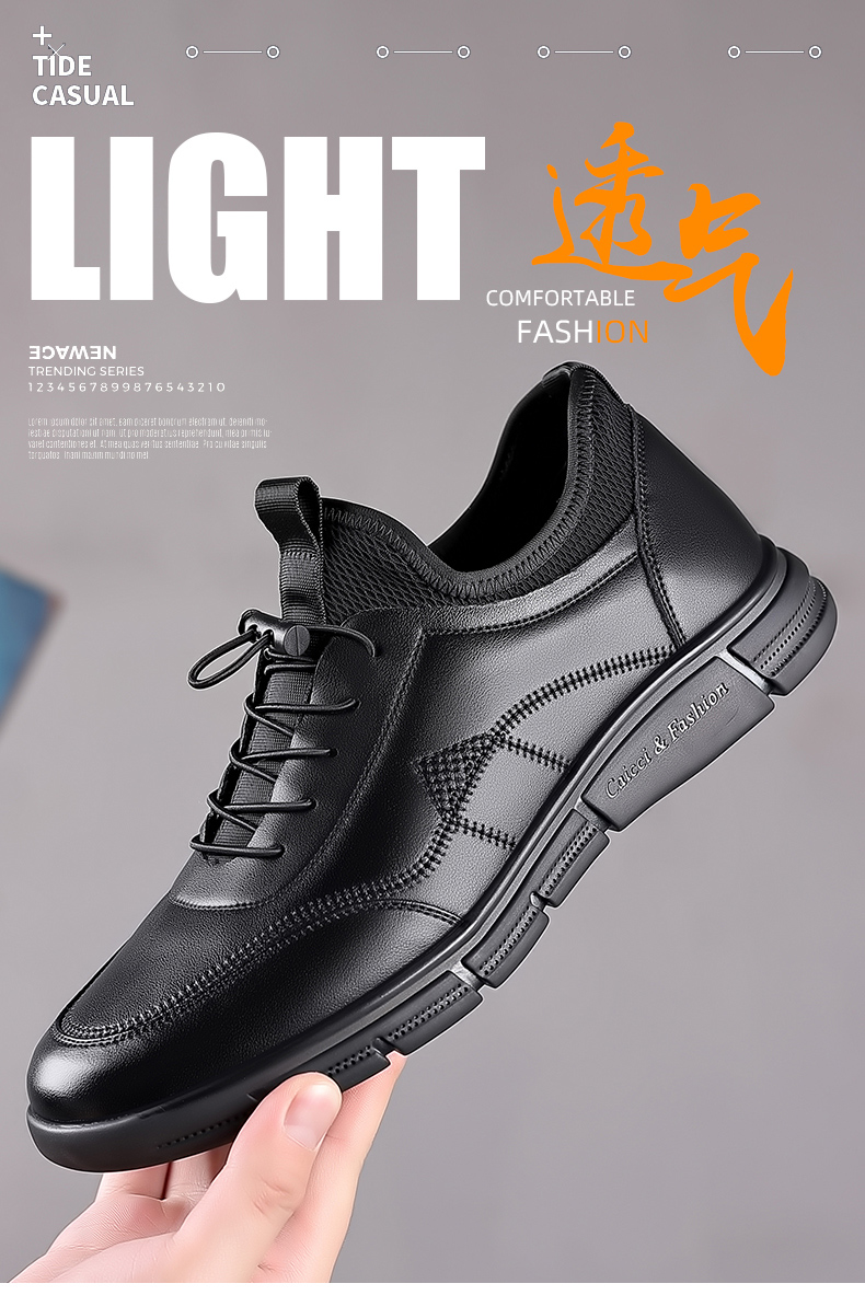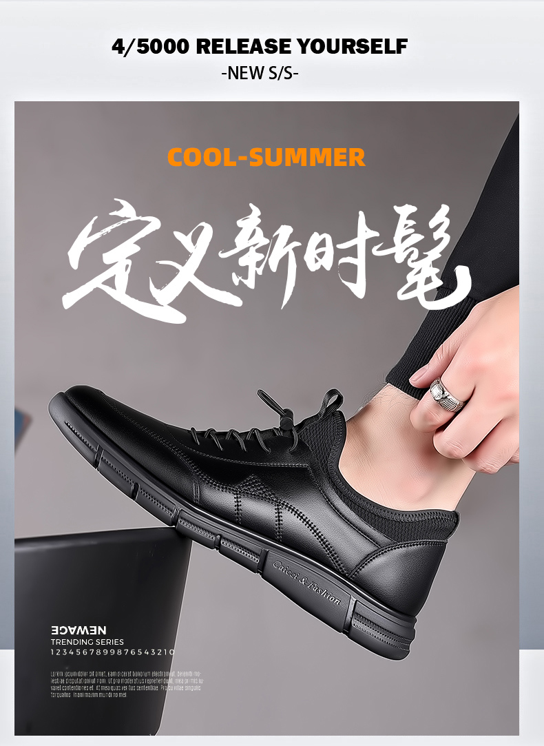 Your location:homeSHOESMITHOld Cobbler Men's Shoes 2022 Summer New Korean Style Versatile Trendy Casual Leather Shoes Genuine Leather Athletic Black Shoes