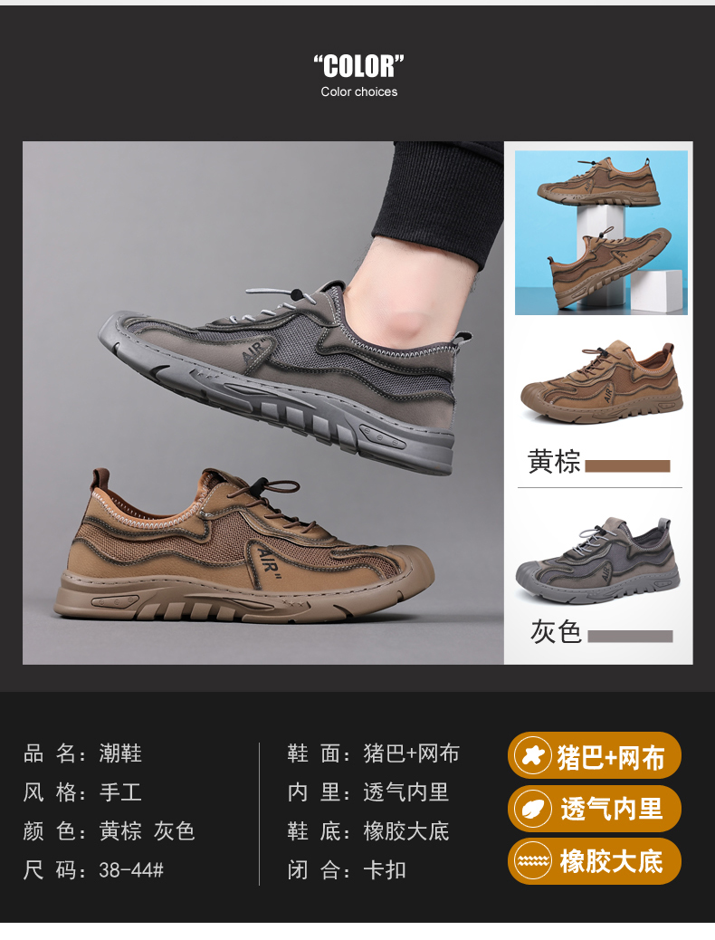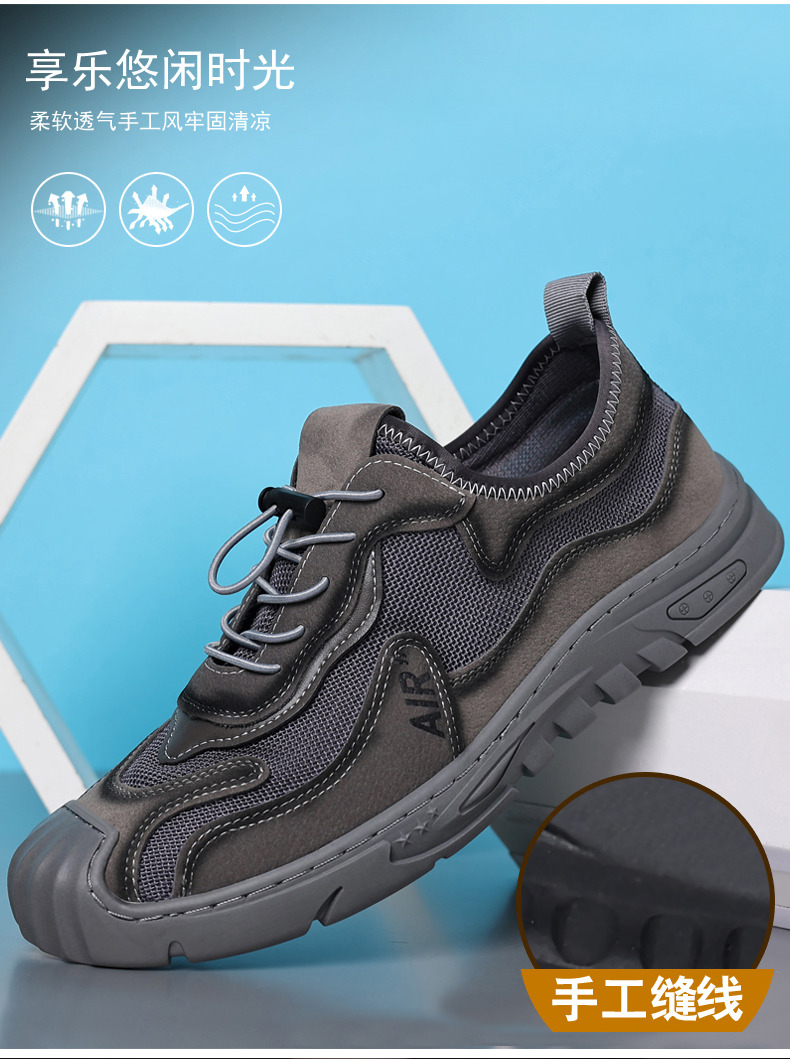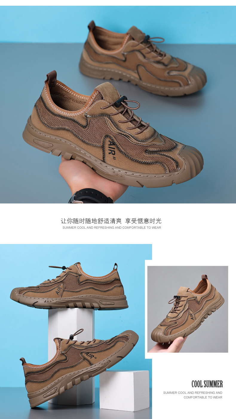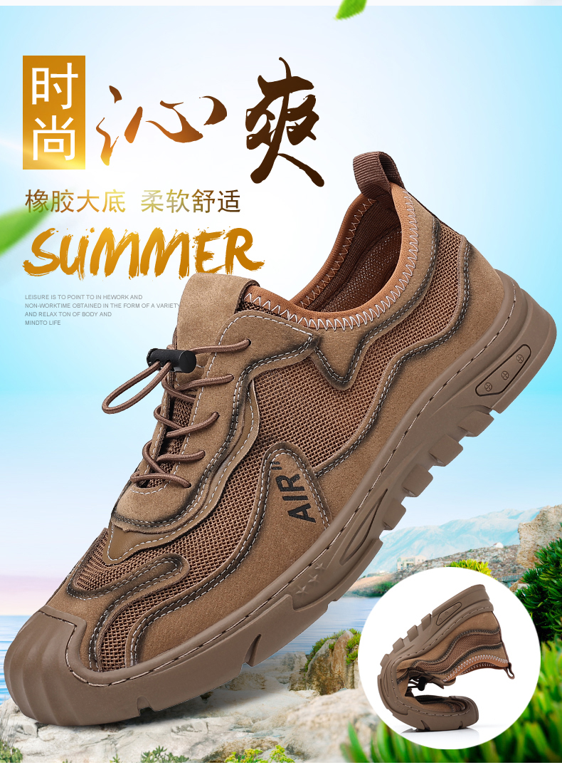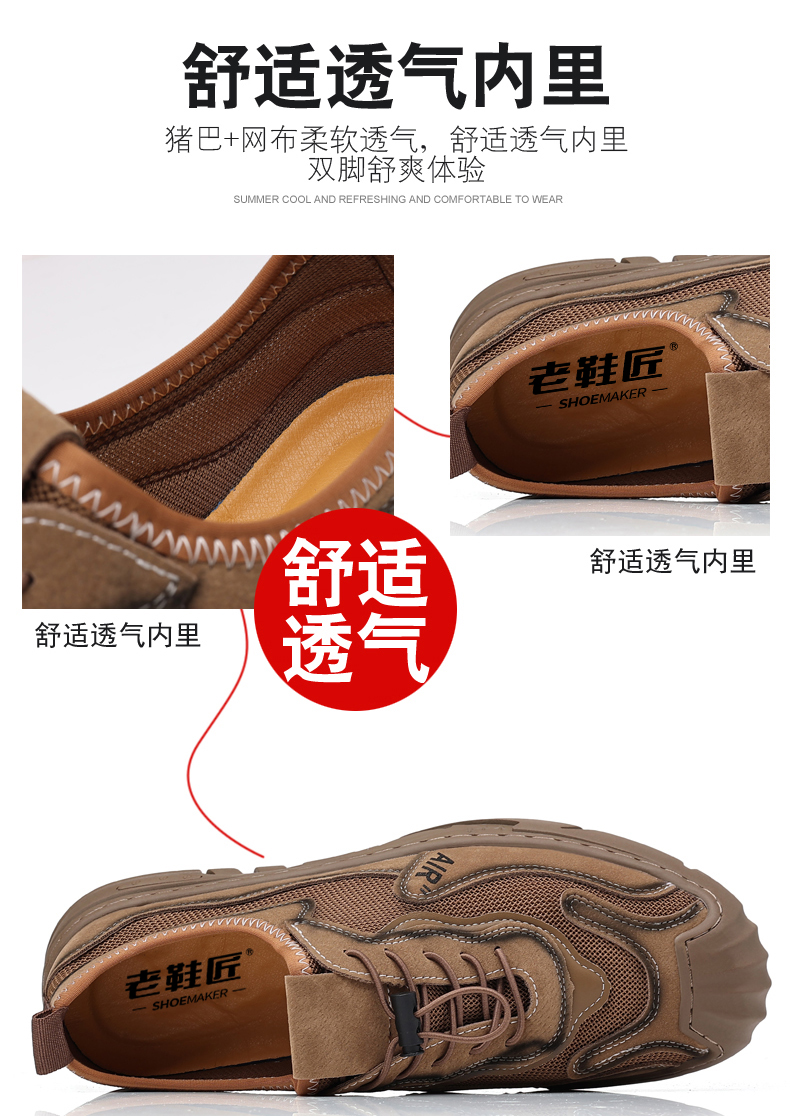Your location:homeSHOESMITHOld Cobbler Men's Shoes 2022 Summer New Genuine Leather Mesh Shoes Breathable Lightweight Slip-on Outdoor Casual Sports Shoes