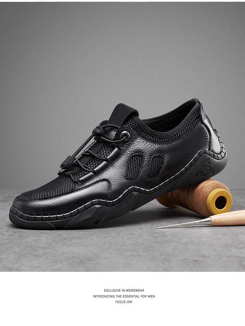 Your location:homeSHOESMITHOld Cobbler Men's Summer Genuine Leather Breathable Casual Shoes Slip-on Loafers Dad Sandals