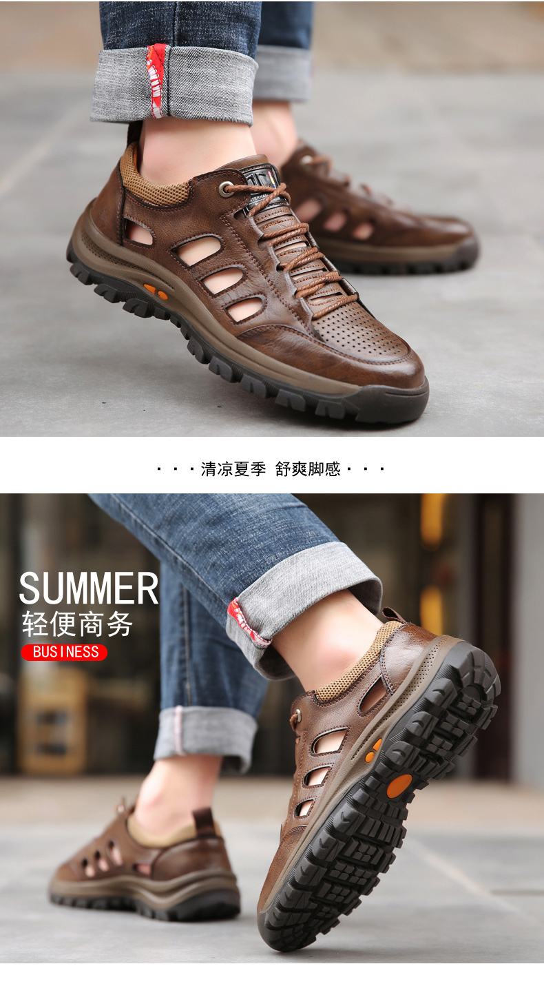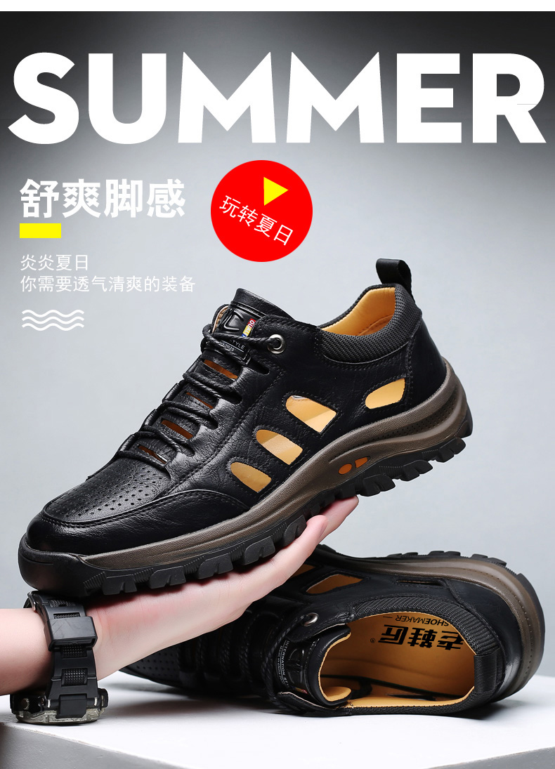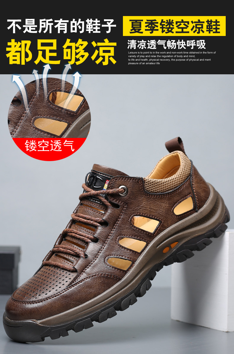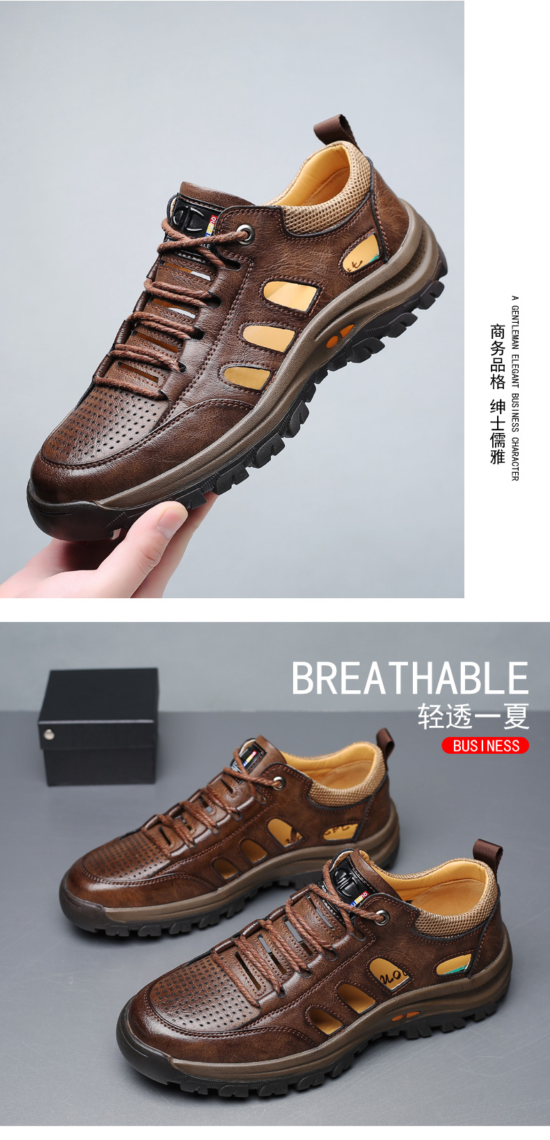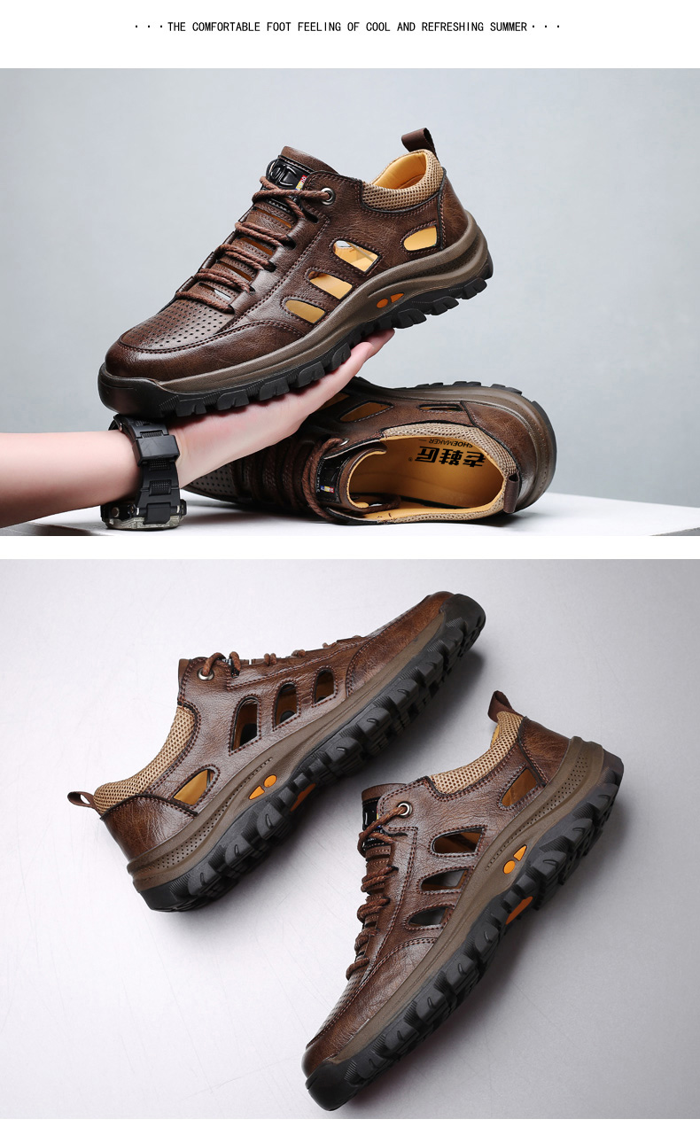 Your location:homeSHOESMITHOld Cobbler Men's Leather Sandals - 2022 Summer New Outdoor Breathable Perforated Casual Leather Shoes with Closed Toe
