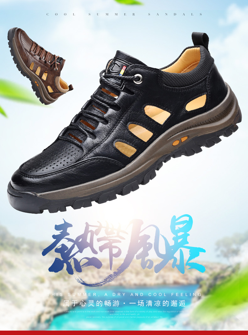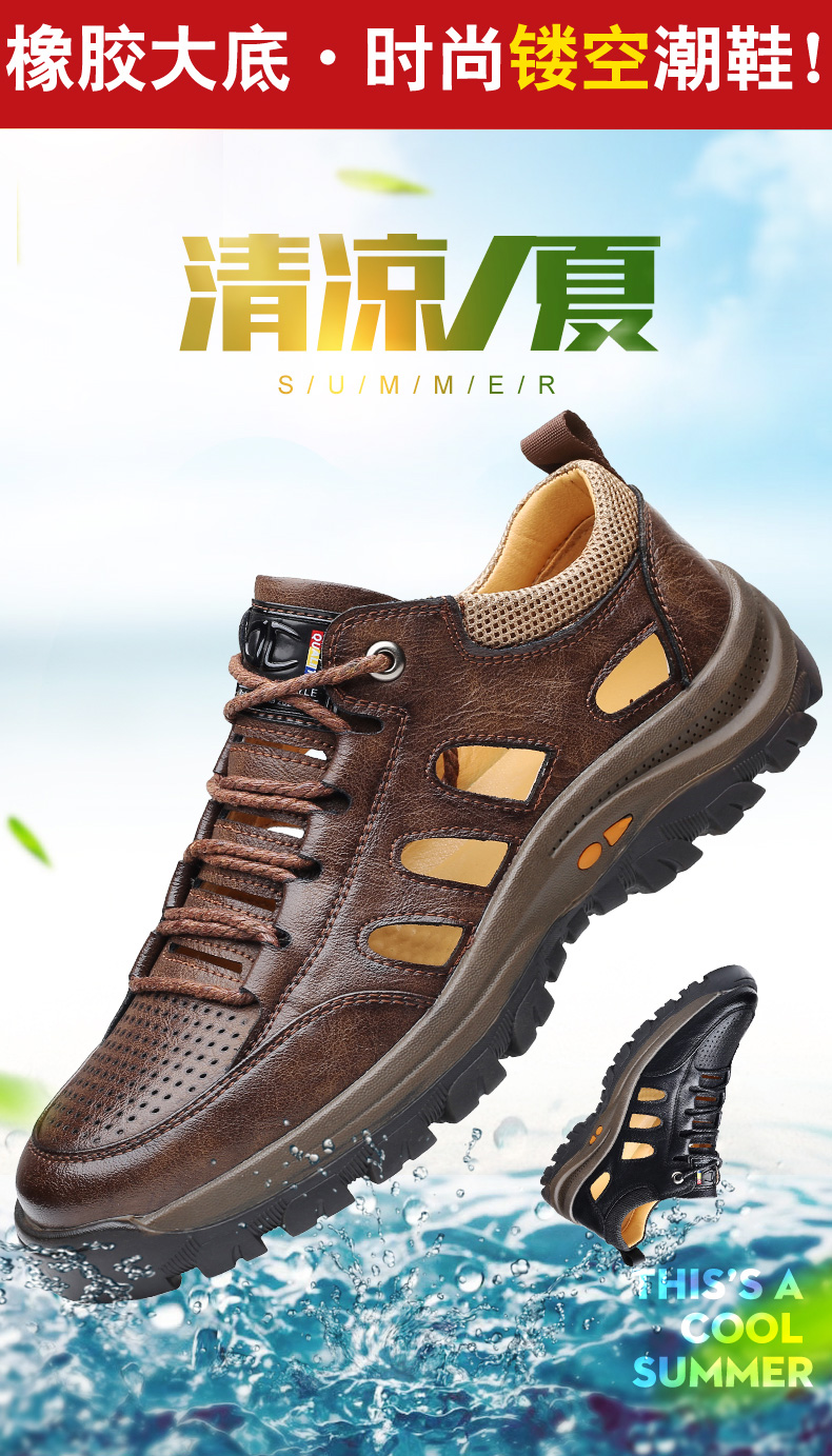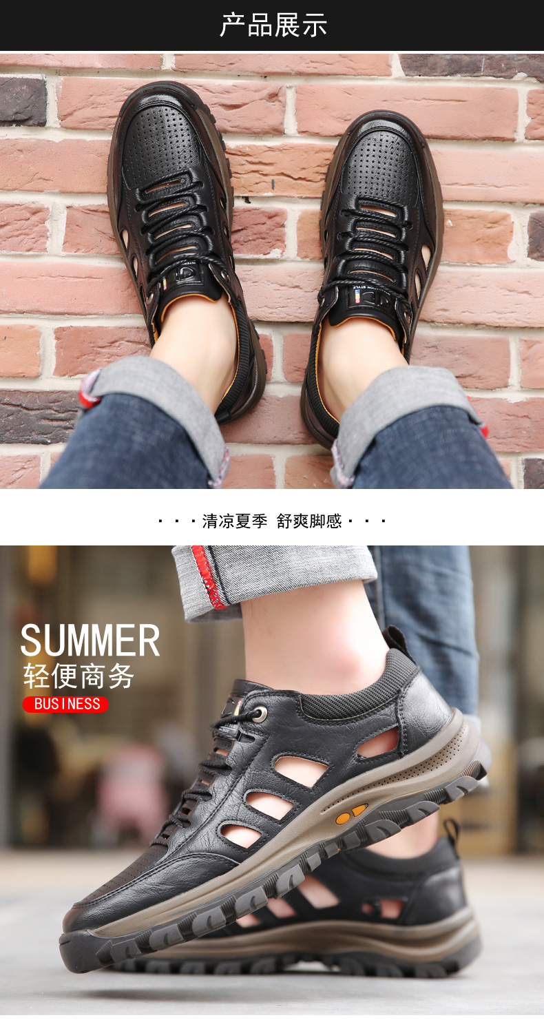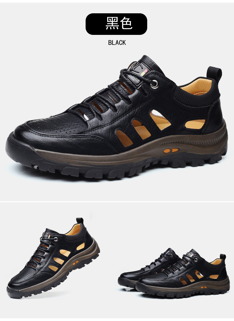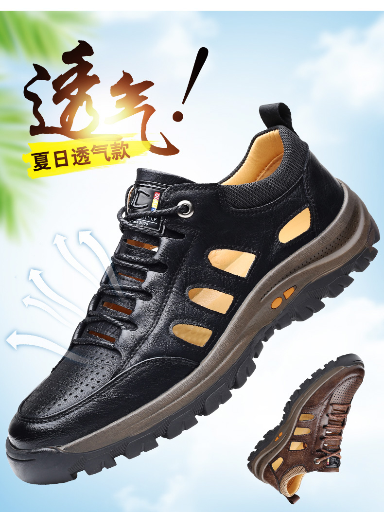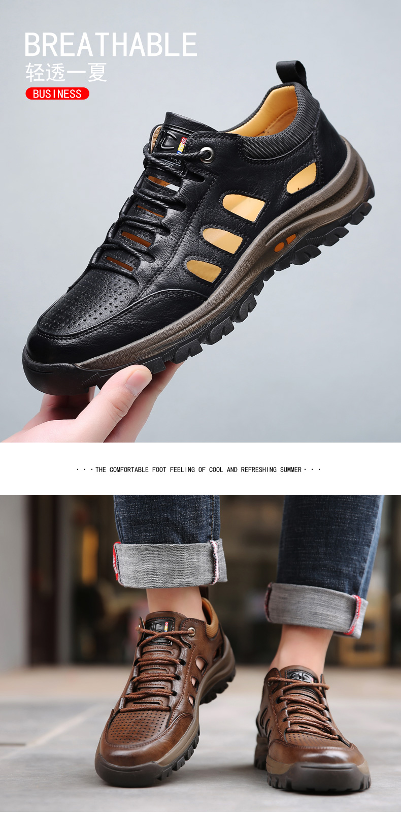 Your location:homeSHOESMITHOld Cobbler Men's Leather Sandals - 2022 Summer New Outdoor Breathable Perforated Casual Leather Shoes with Closed Toe