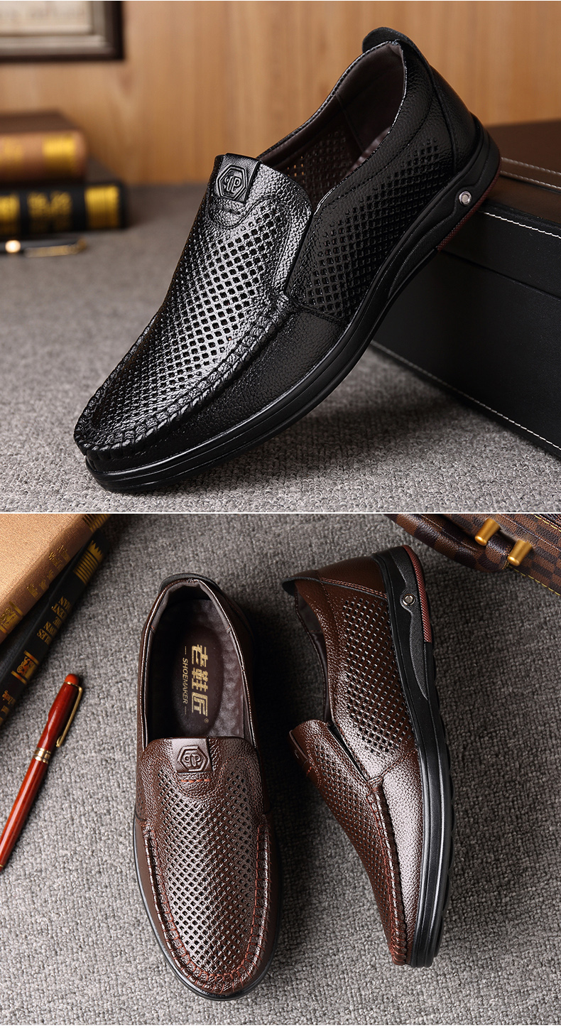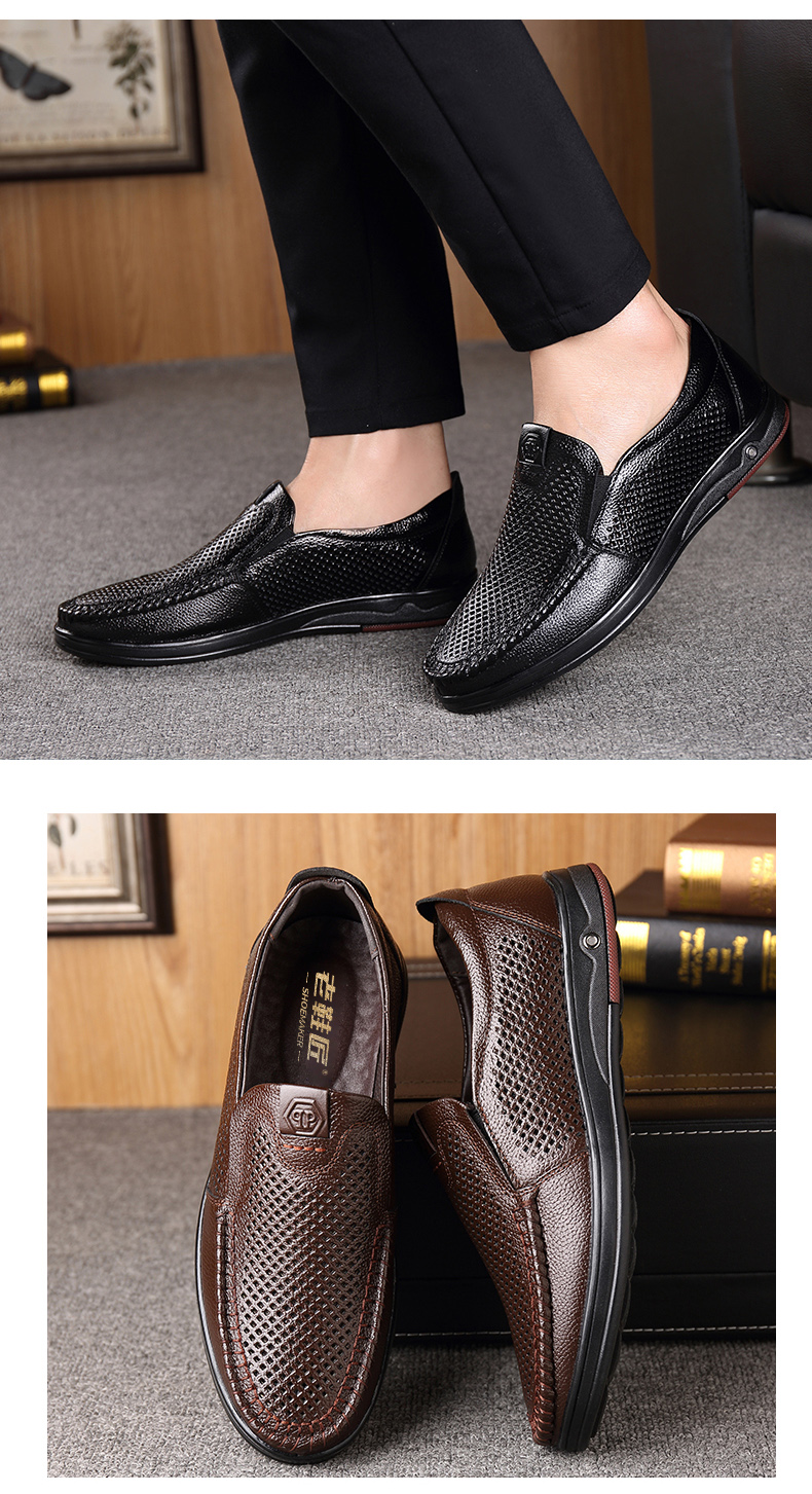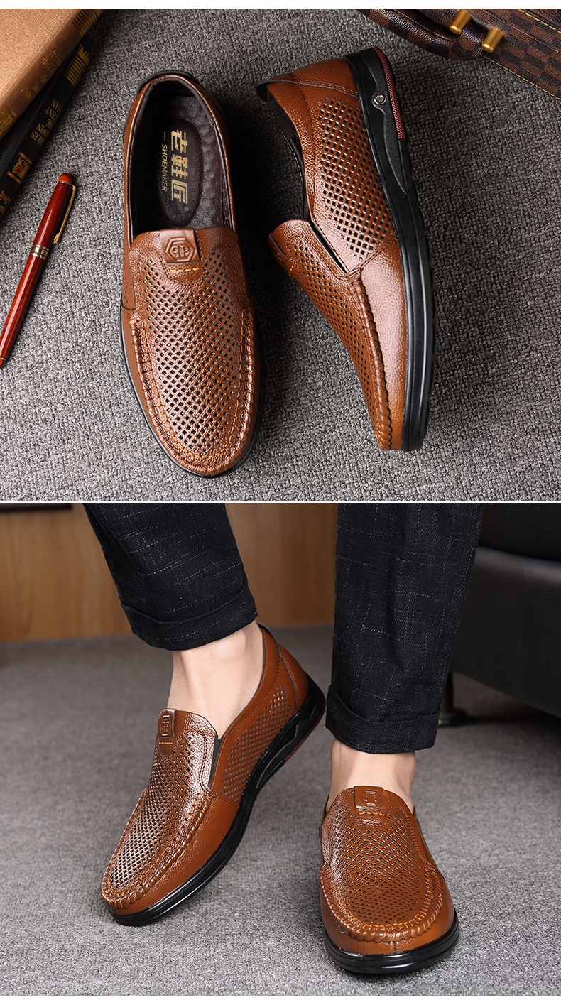 Your location:homeSHOESMITHOld Cobbler Men's Shoes 2022 Summer New Genuine Leather Breathable Casual Loafers Slip-on Dad Sandals