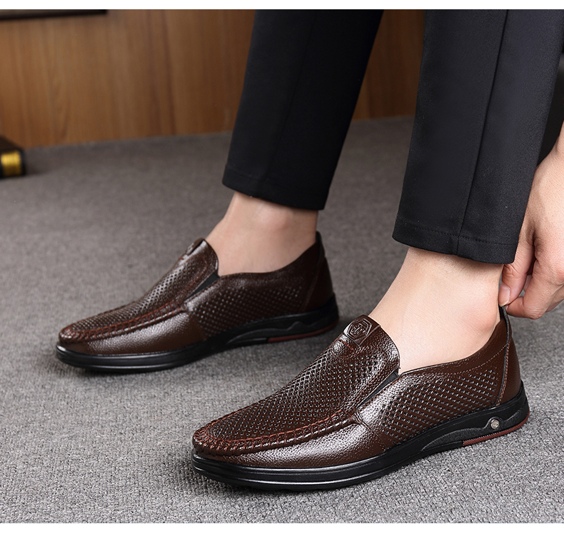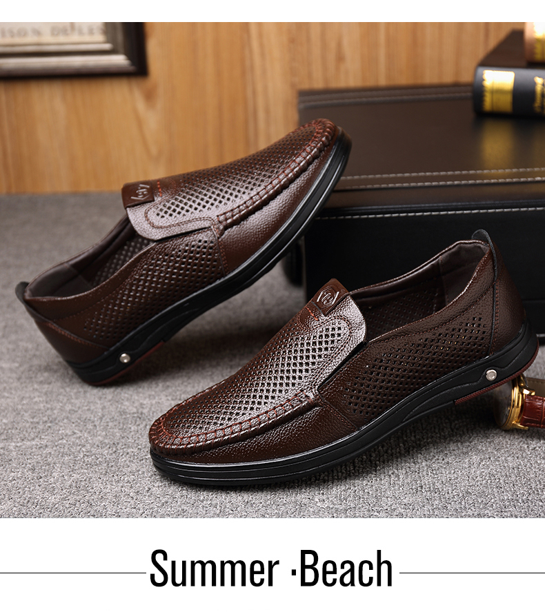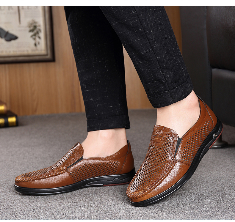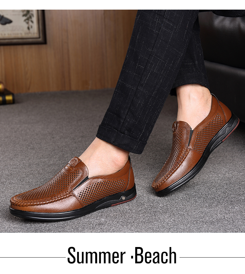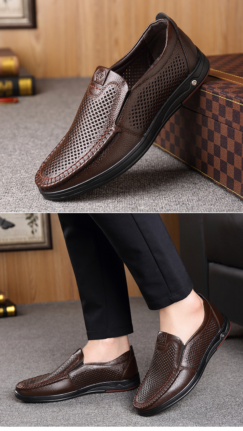 Your location:homeSHOESMITHOld Cobbler Men's Shoes 2022 Summer New Genuine Leather Breathable Casual Loafers Slip-on Dad Sandals