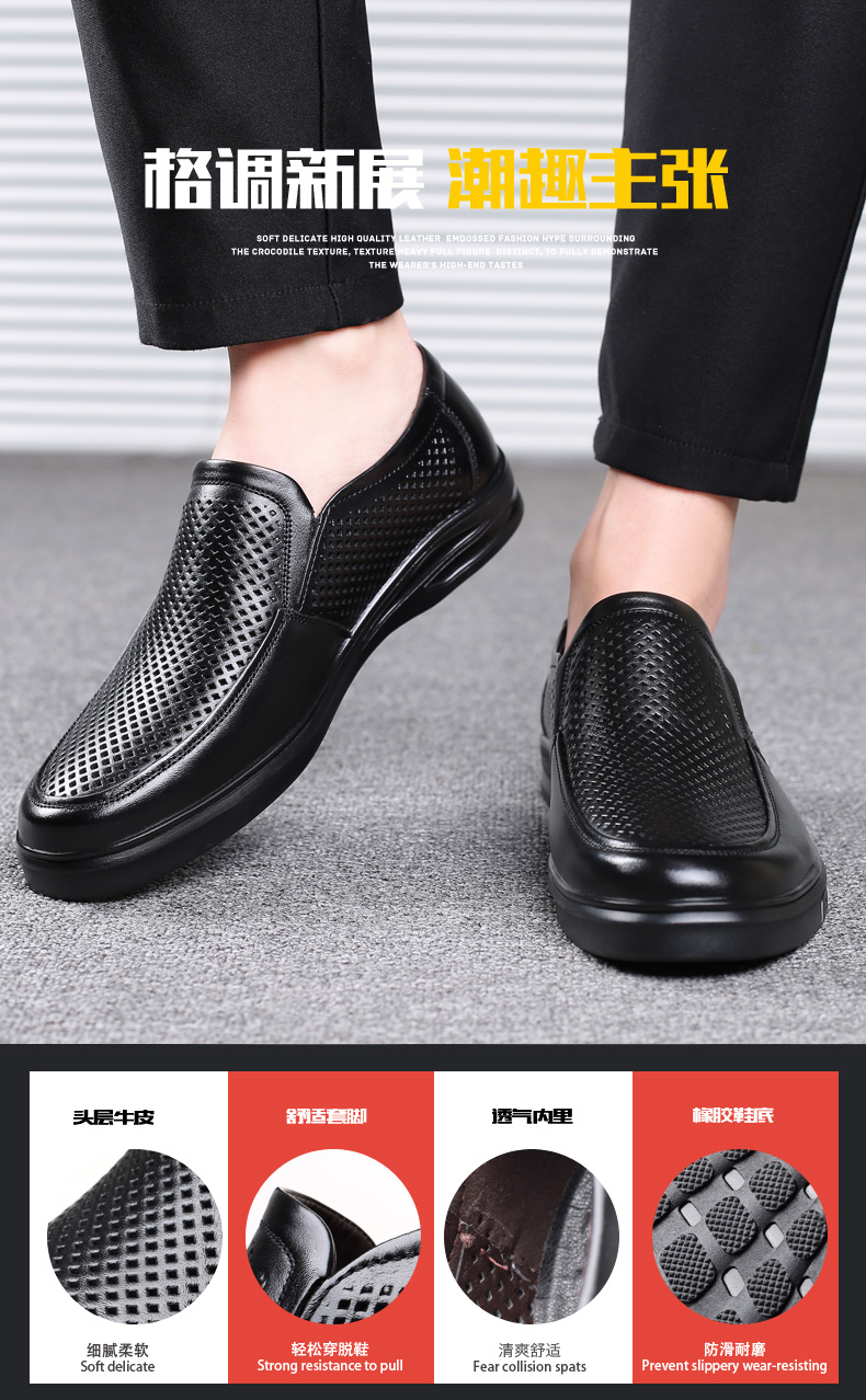 Your location:homeSHOESMITHOld Cobbler Men's Leather Shoes 2022 Summer New Genuine Leather Breathable Casual Sandals Perforated Comfort Dad Shoes