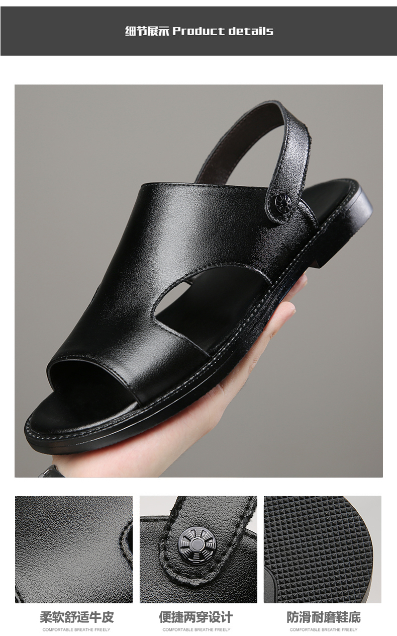 Your location:homeSHOESMITHOld Cobbler's Genuine Leather Open-toe Sandals - Men's Soft Sole Breathable Summer Casual Beach Shoes