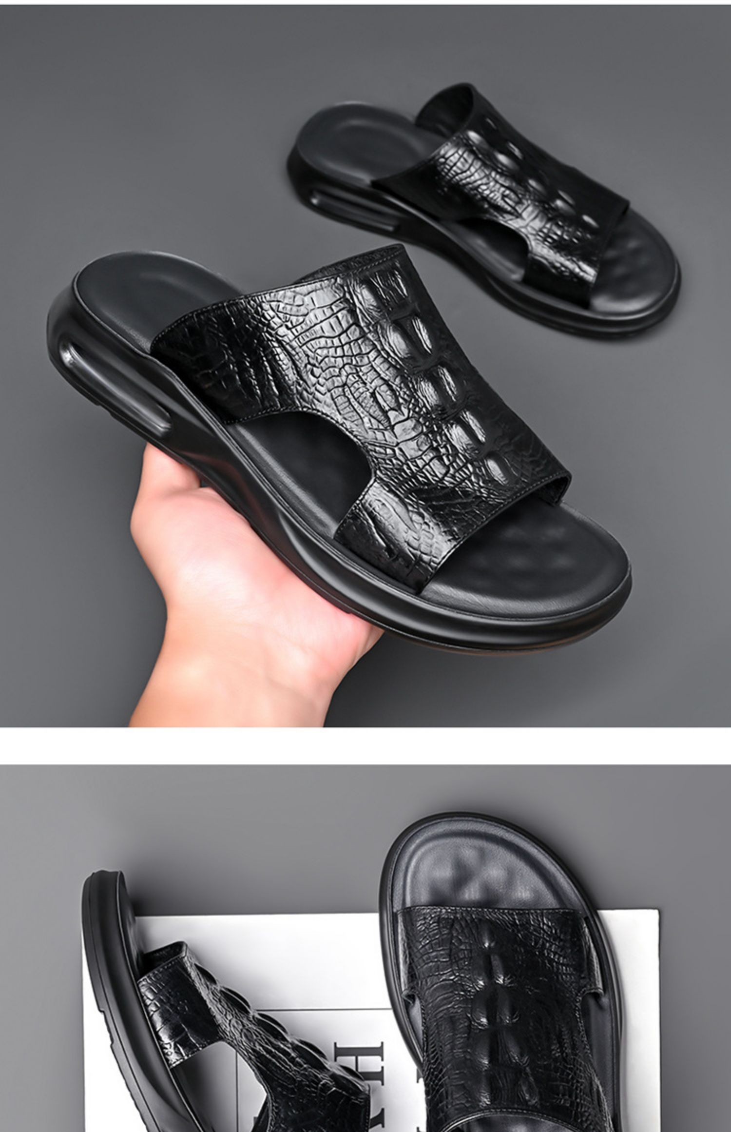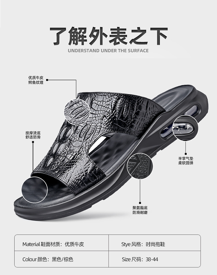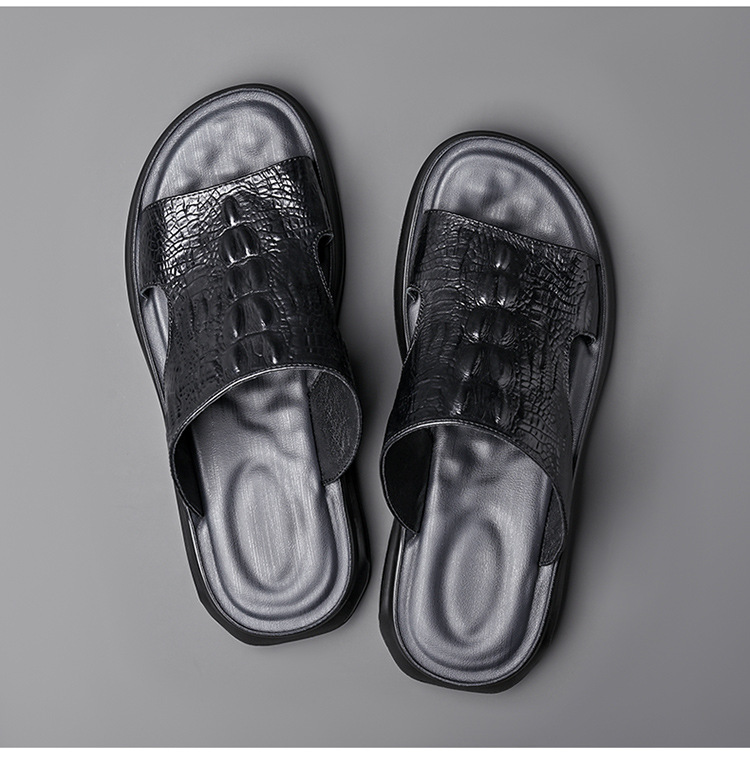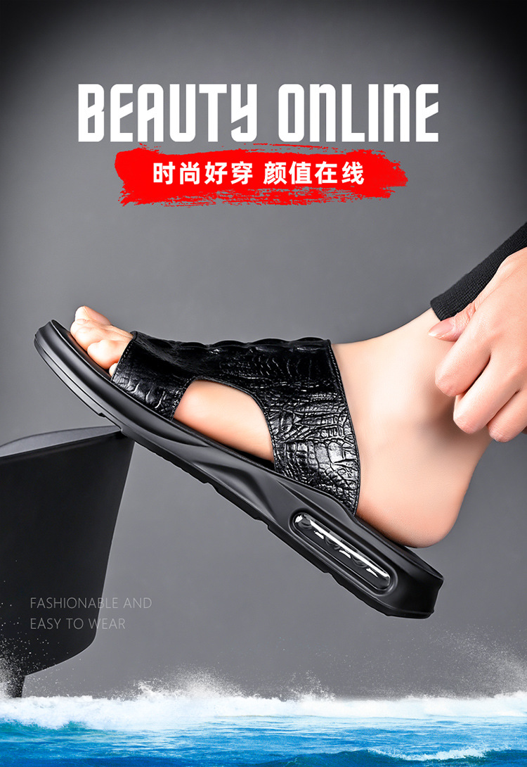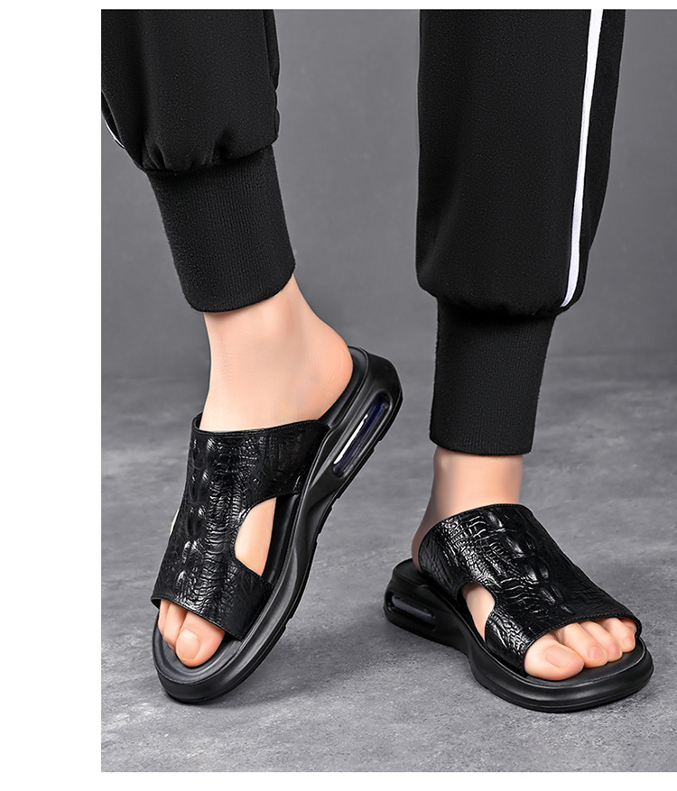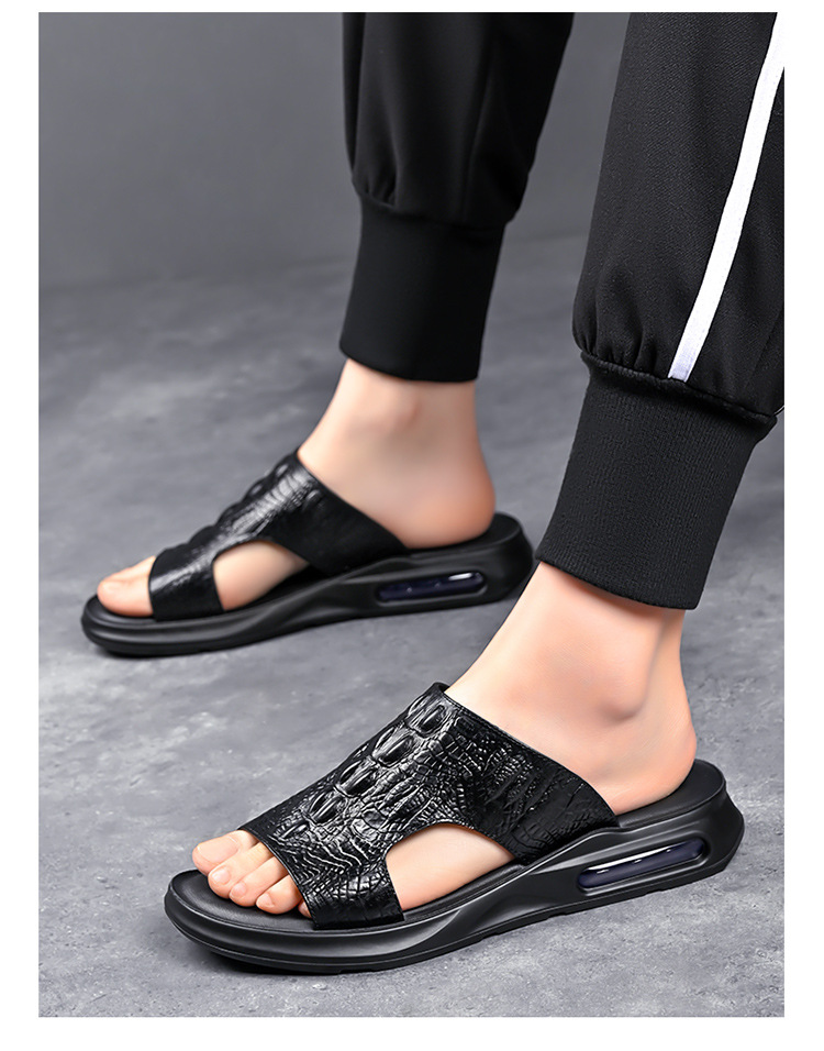 Your location:homeSHOESMITH2022 New Fashion Men's Casual Slides Summer Outdoor Genuine Leather Slippers Men's Flat Sandals Trendy Footwear