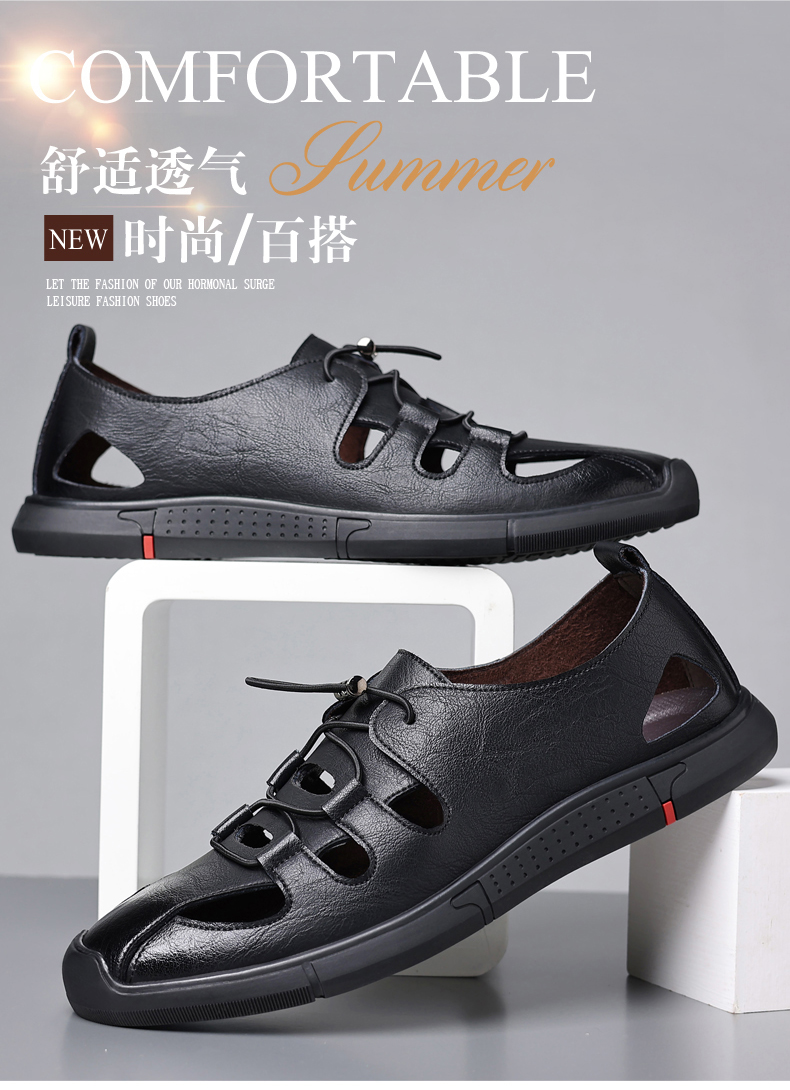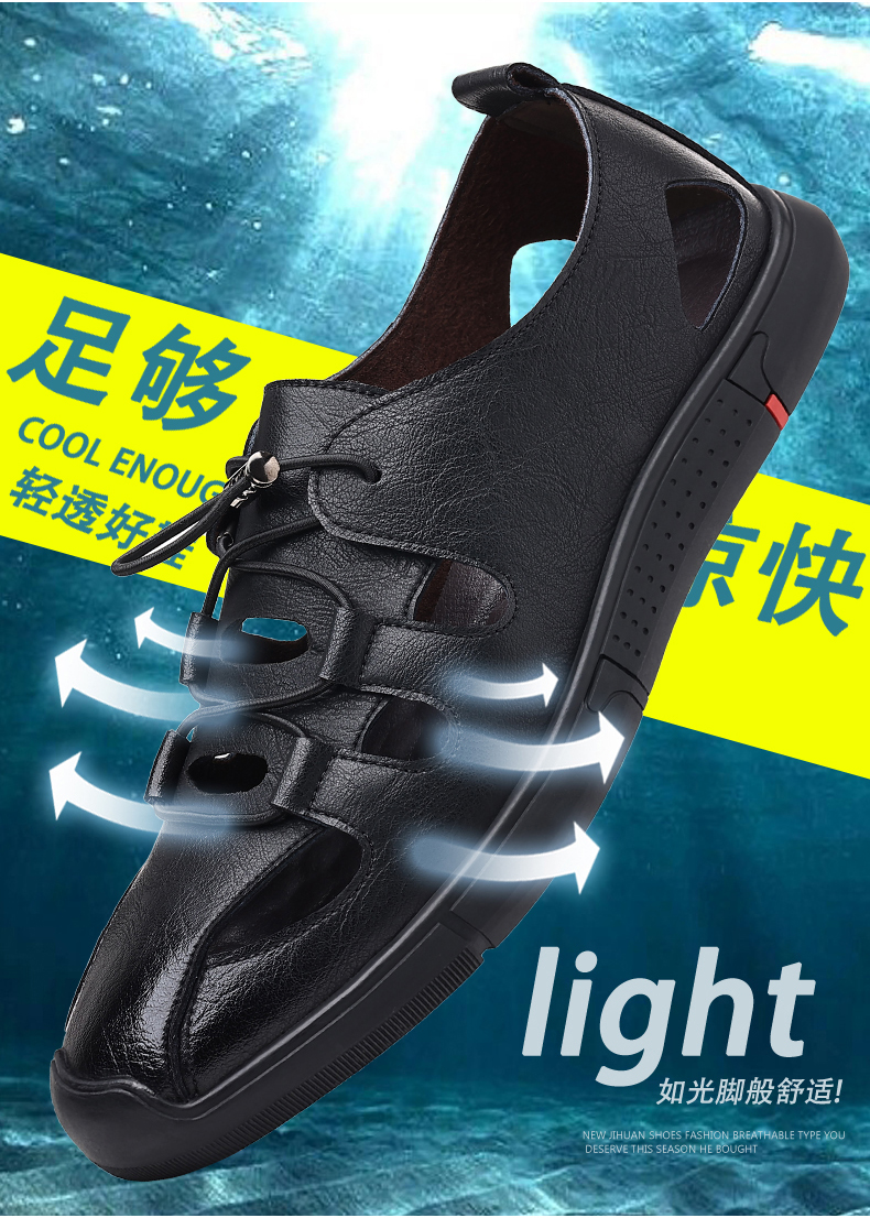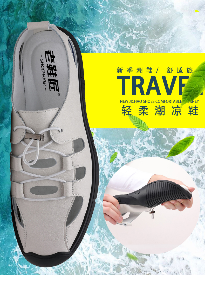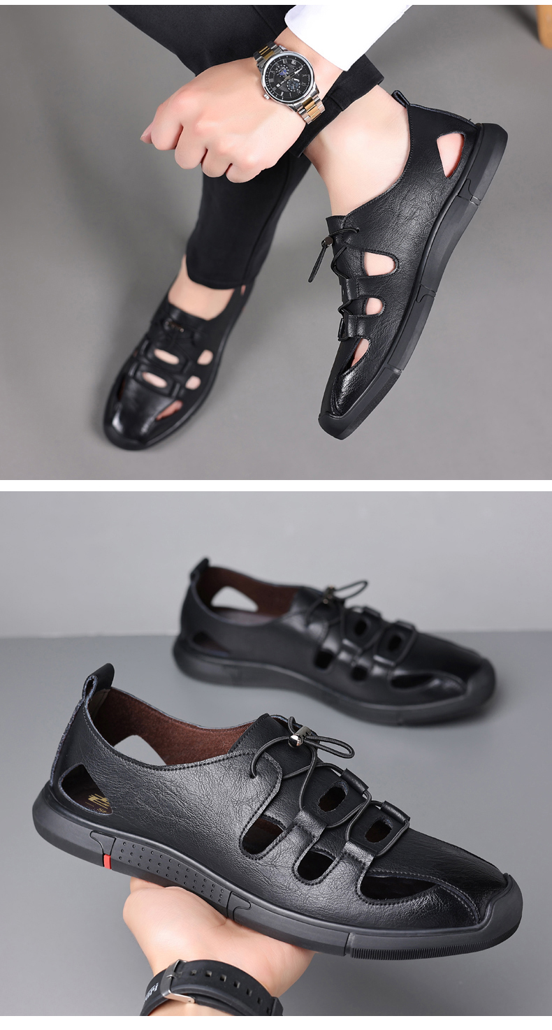 Your location:homeSHOESMITHOld Cobbler Men's Summer Driving Sandals Genuine Leather Breathable Beach Shoes Soft Sole Closed-toe Casual Leather Sandals