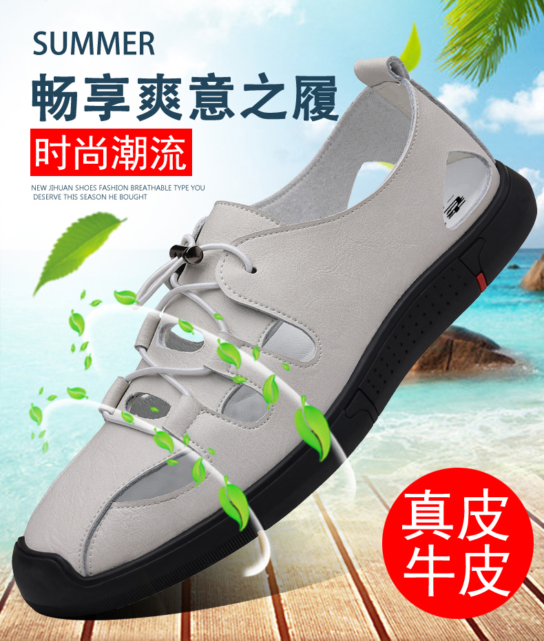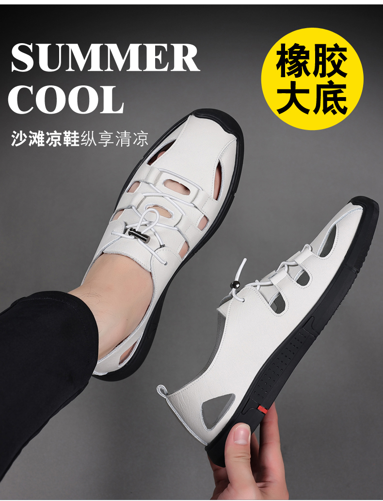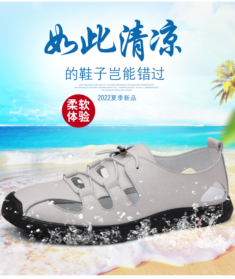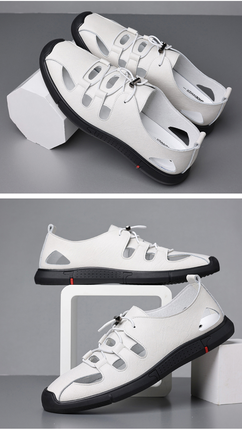Your location:homeSHOESMITHOld Cobbler Men's Summer Driving Sandals Genuine Leather Breathable Beach Shoes Soft Sole Closed-toe Casual Leather Sandals