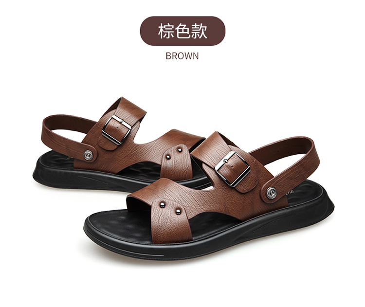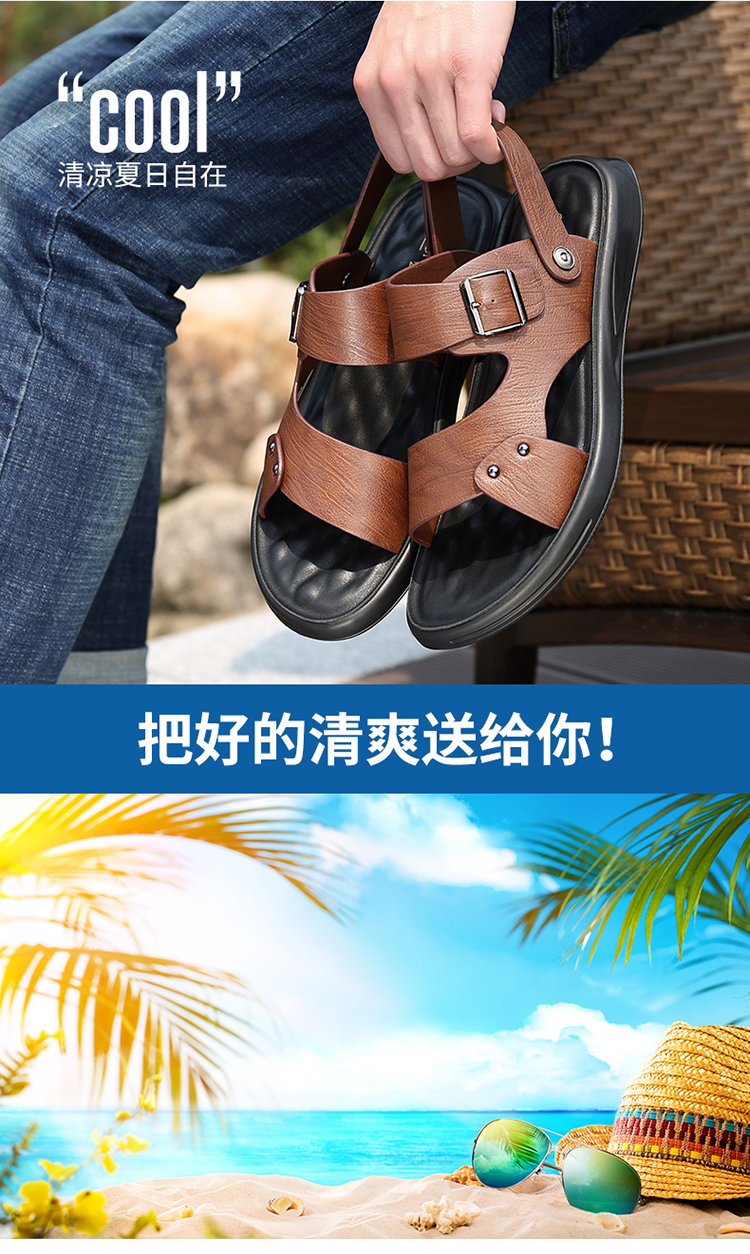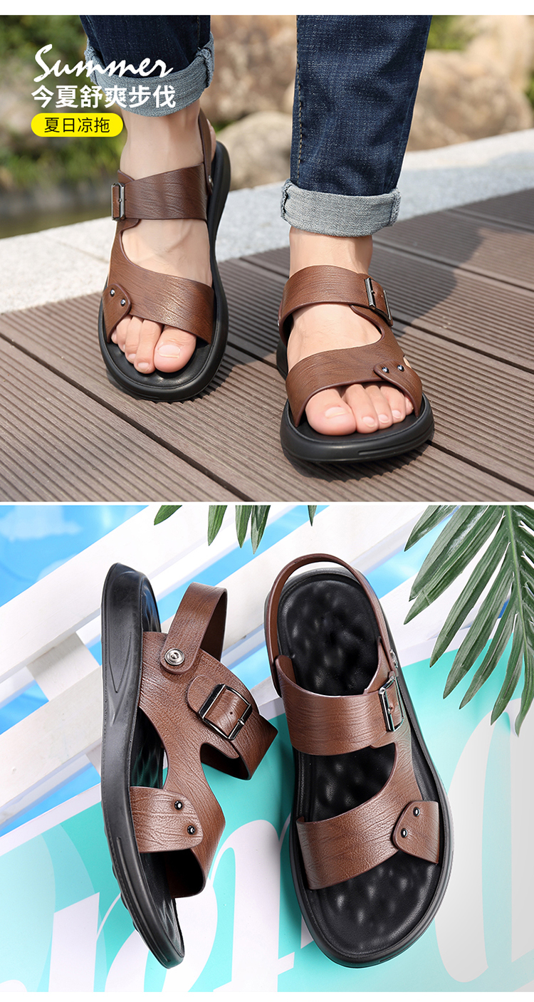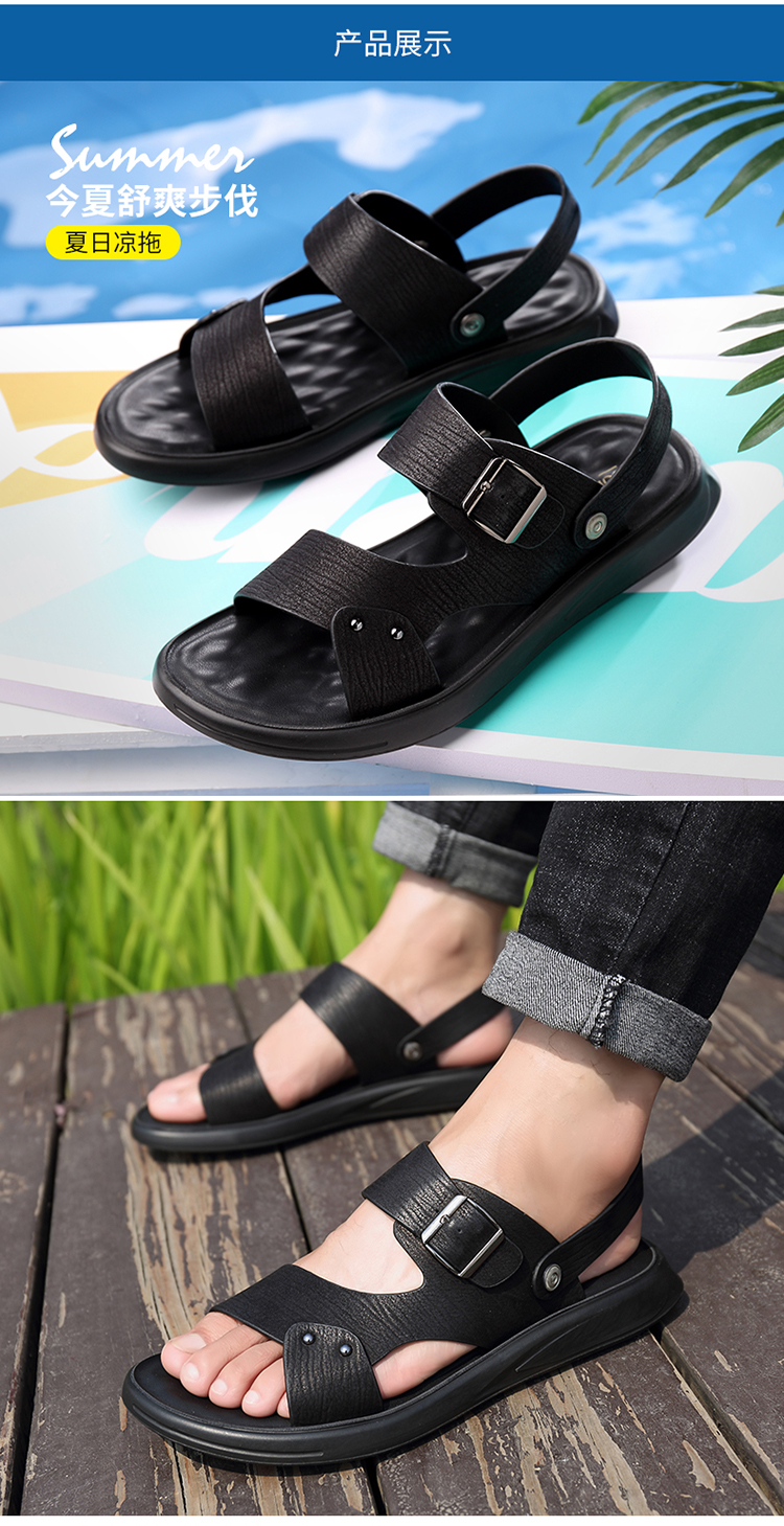 Your location:homeSHOESMITHMen's Genuine Leather Summer Sandals, Dual-use Slip-resistant Dad Shoes with Soft Soles, Casual Beach Slippers