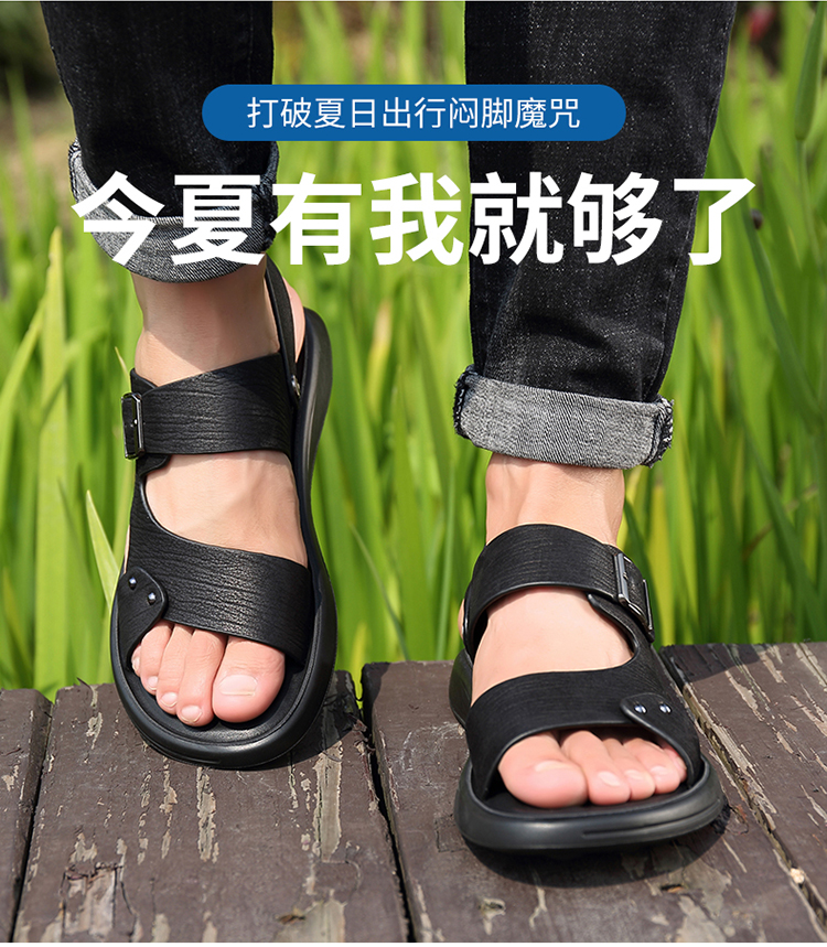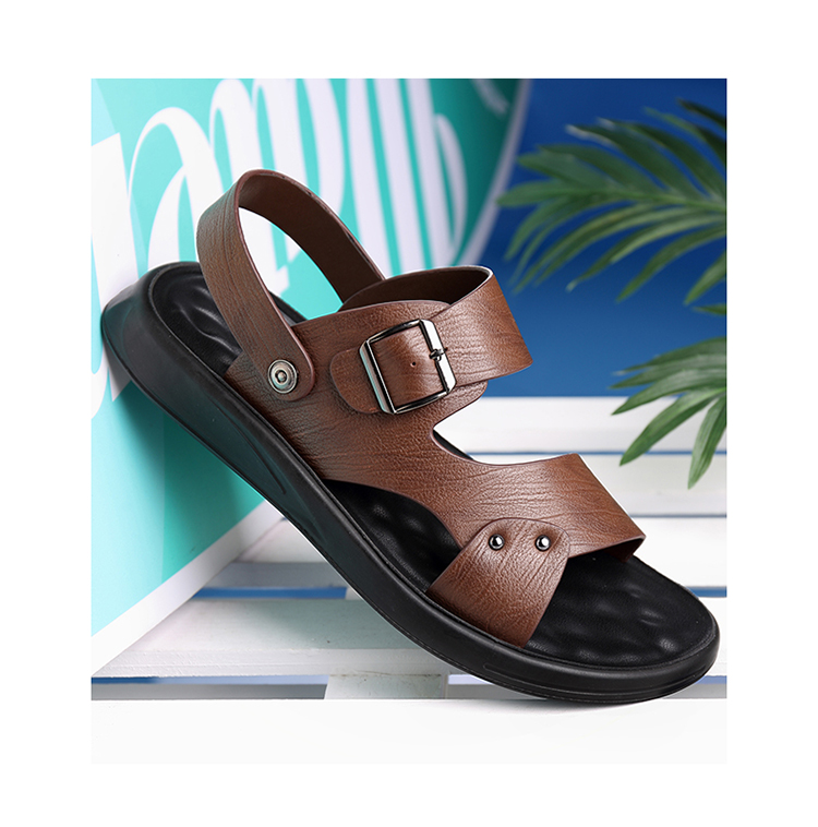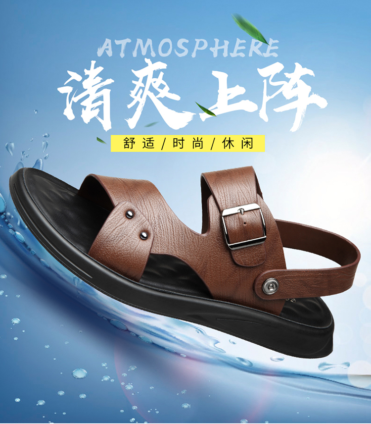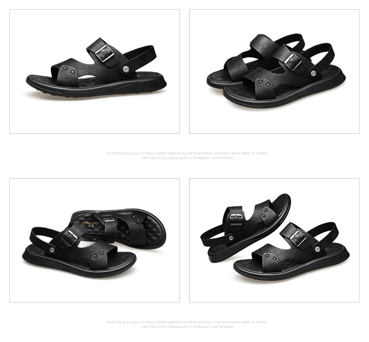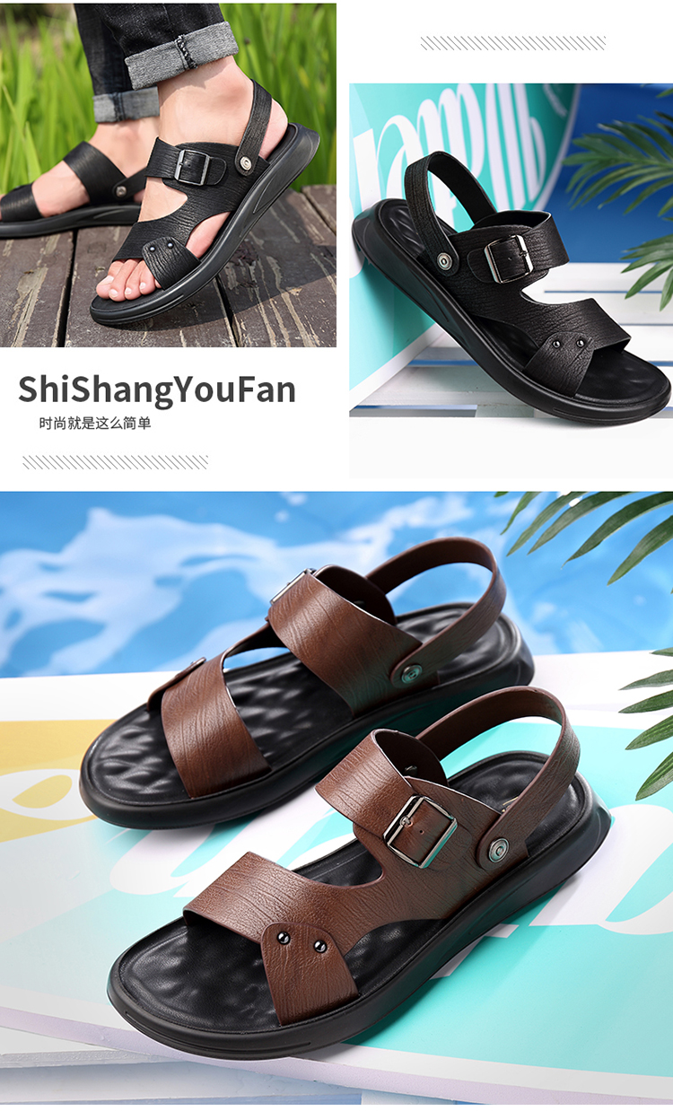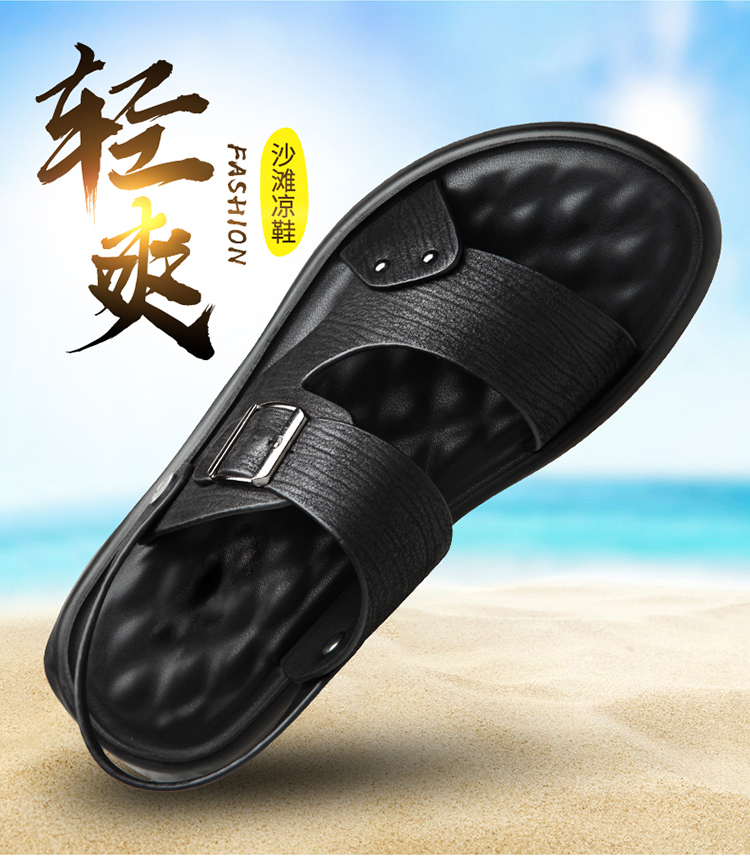 Your location:homeSHOESMITHMen's Genuine Leather Summer Sandals, Dual-use Slip-resistant Dad Shoes with Soft Soles, Casual Beach Slippers