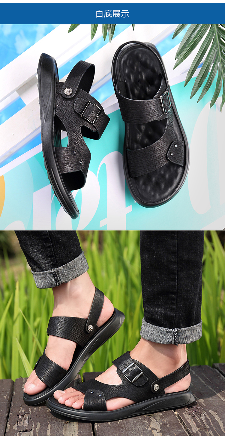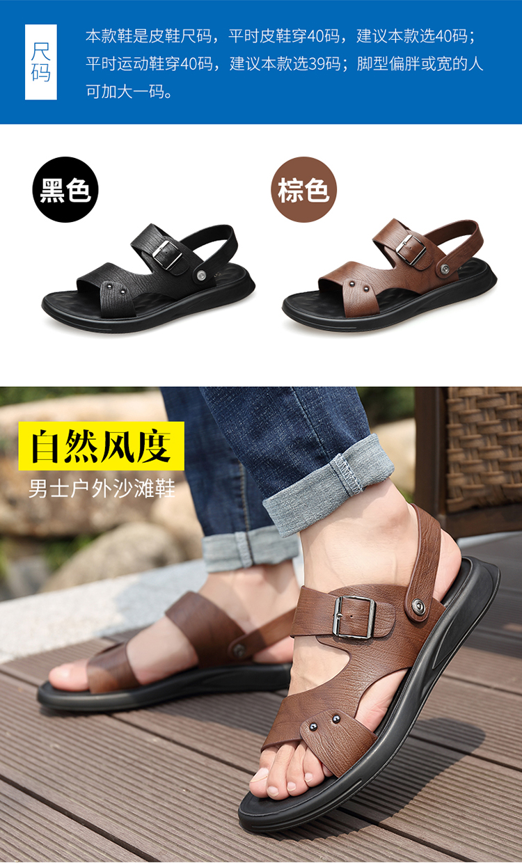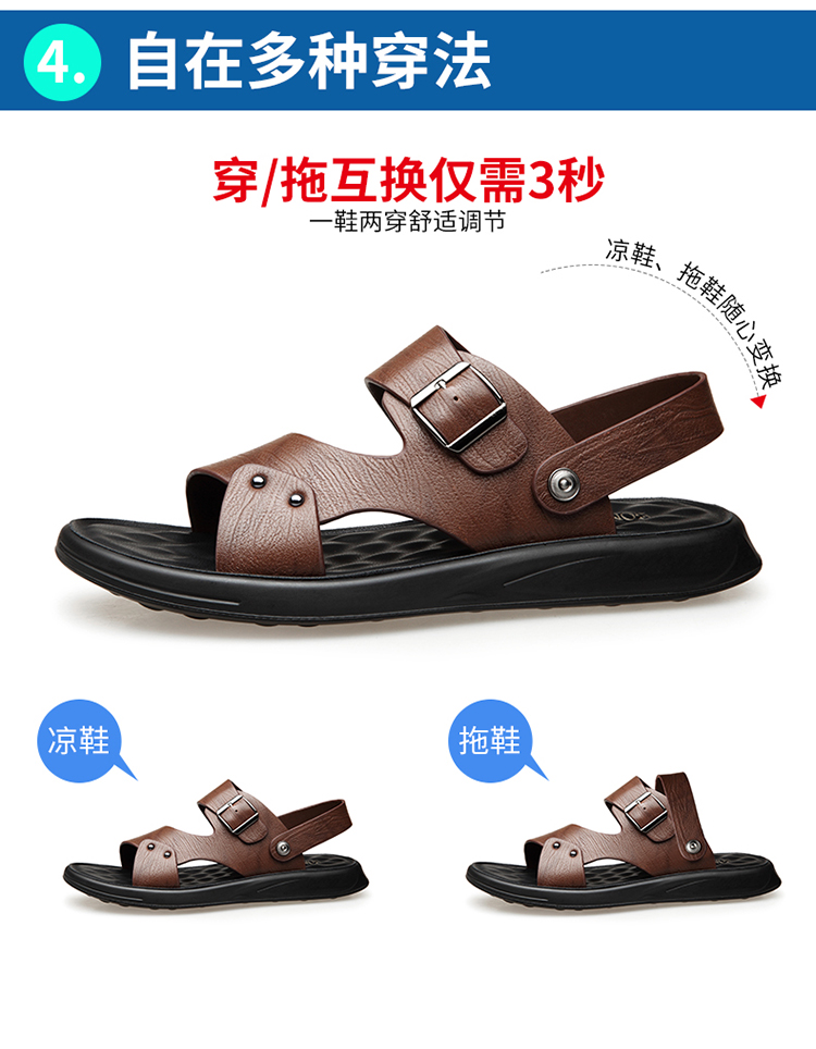 Men's Genuine Leather Summer Sandals, Dual-use Slip-resistant Dad Shoes with Soft Soles, Casual Beach Slippers