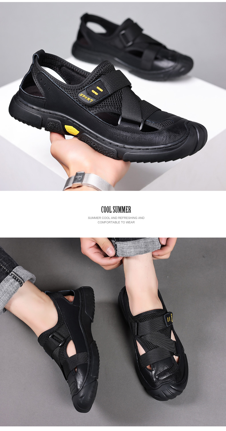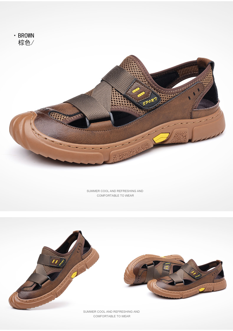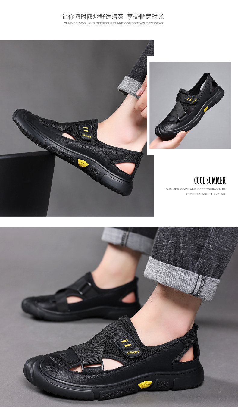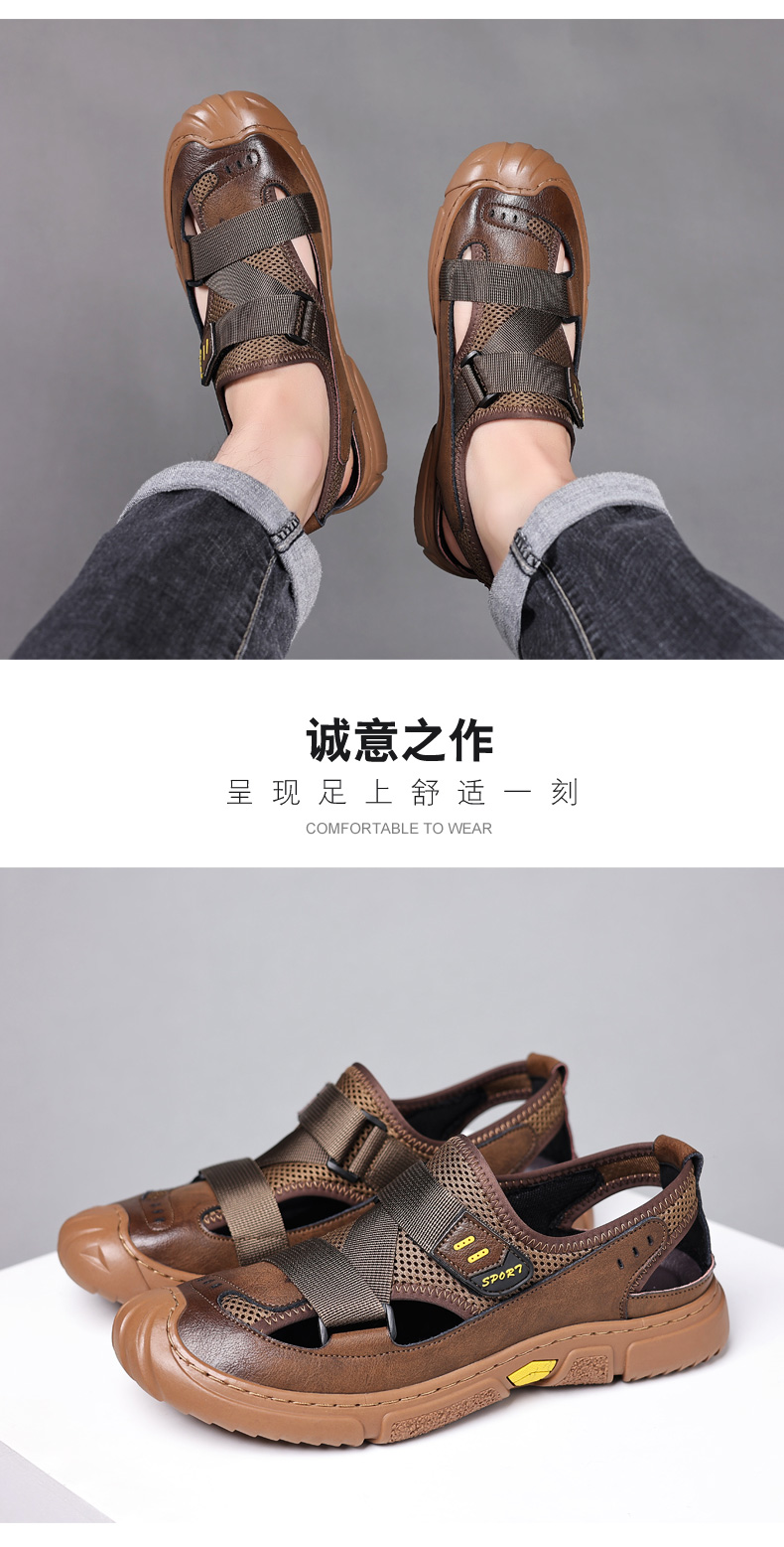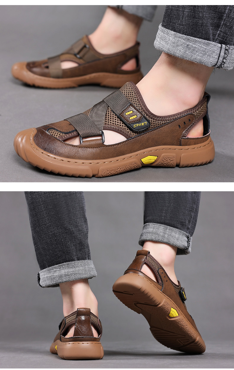 Your location:homeSHOESMITHGenuine Leather Sandals for Men, Summer Breathable Closed-toe Shoes, Comfort Walking Shoes for Middle-aged and Elderly Father
