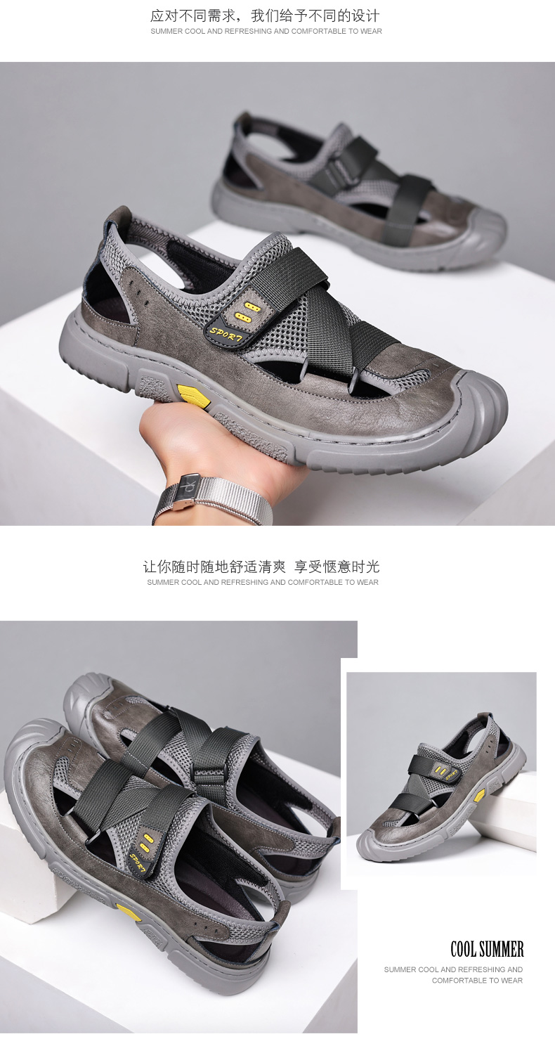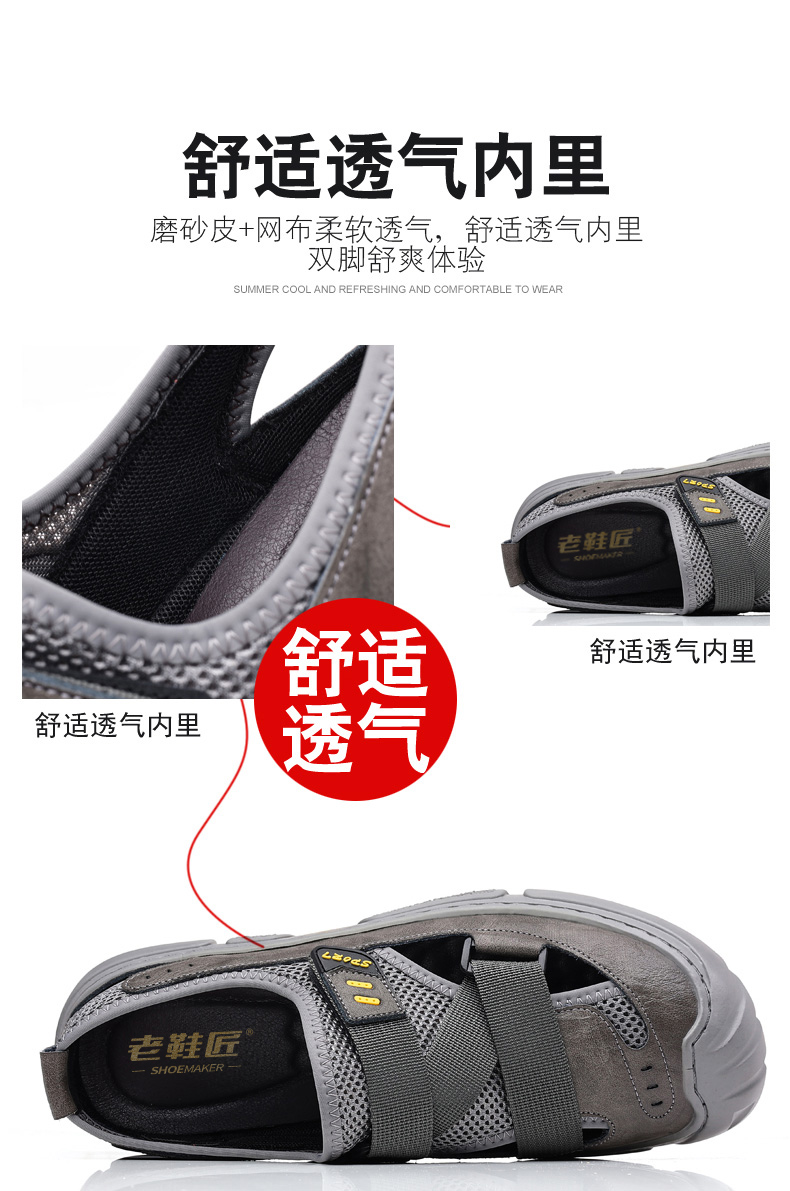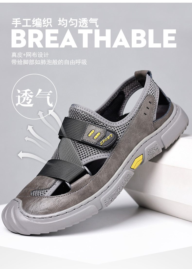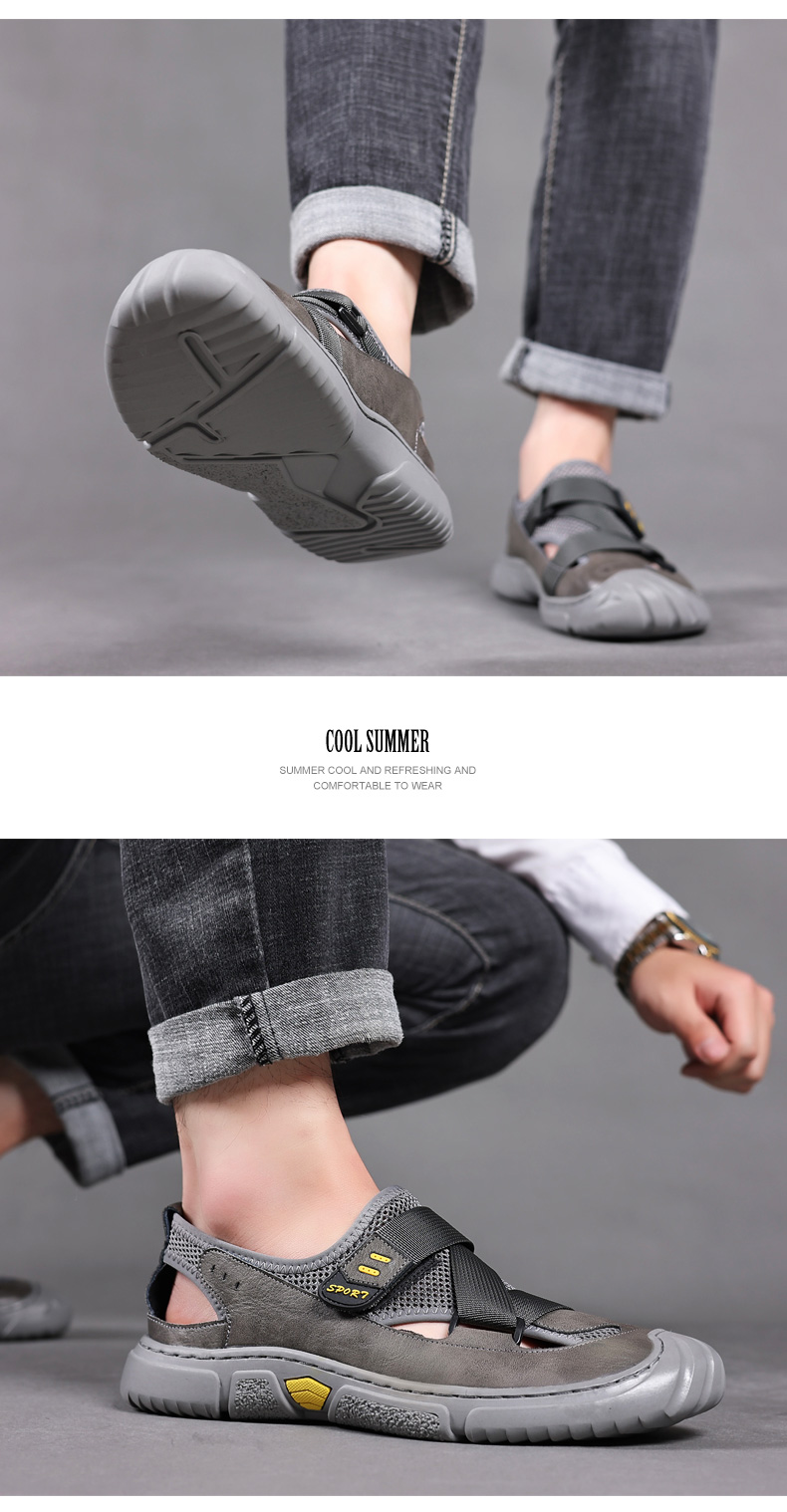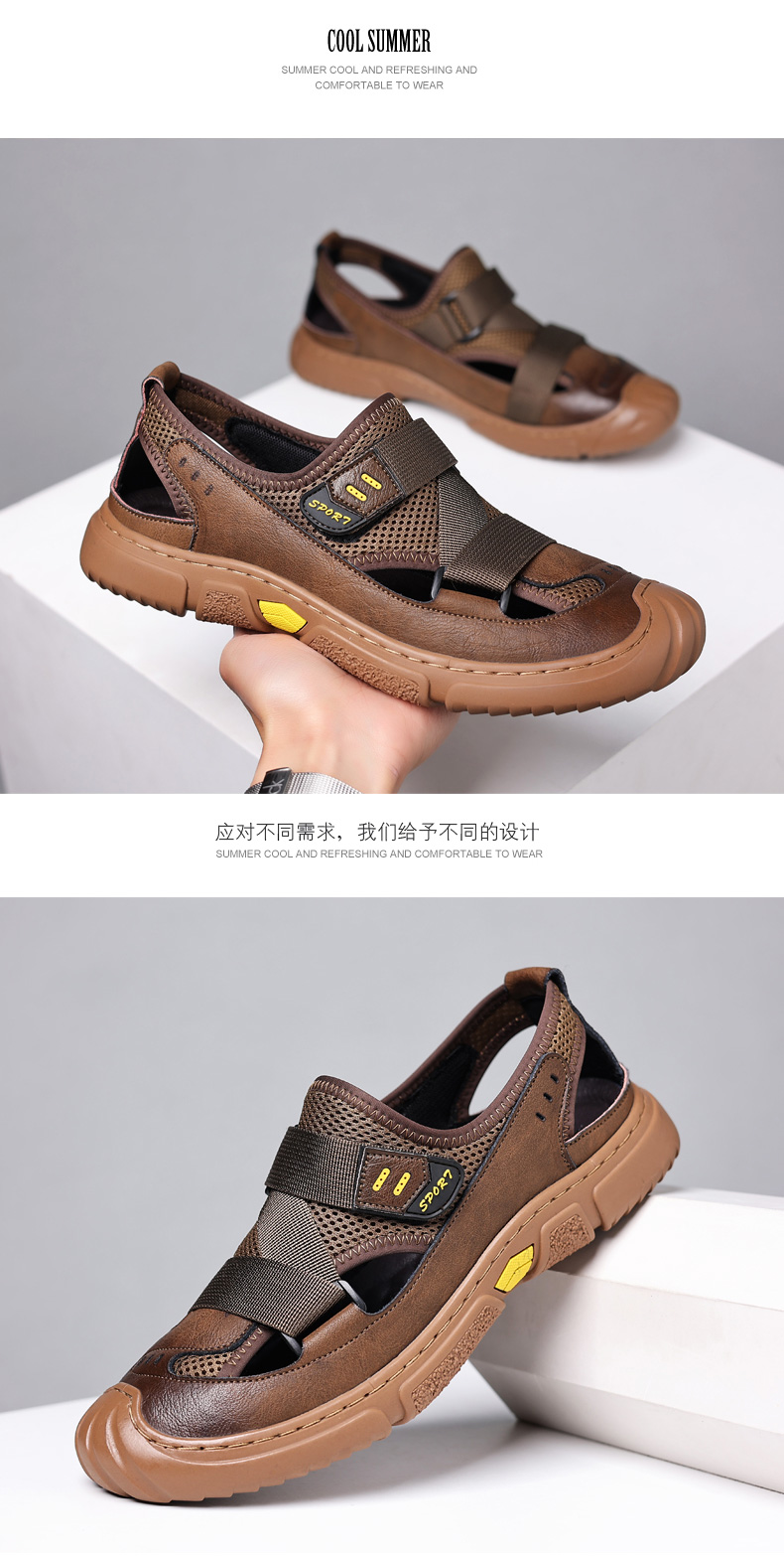 Your location:homeSHOESMITHGenuine Leather Sandals for Men, Summer Breathable Closed-toe Shoes, Comfort Walking Shoes for Middle-aged and Elderly Father