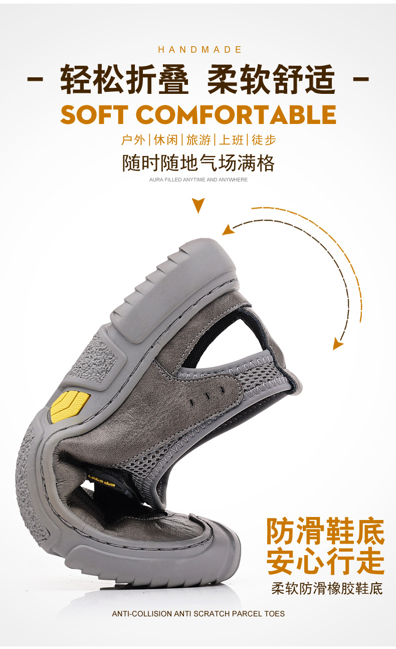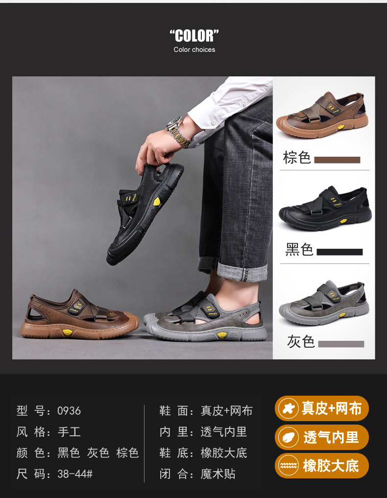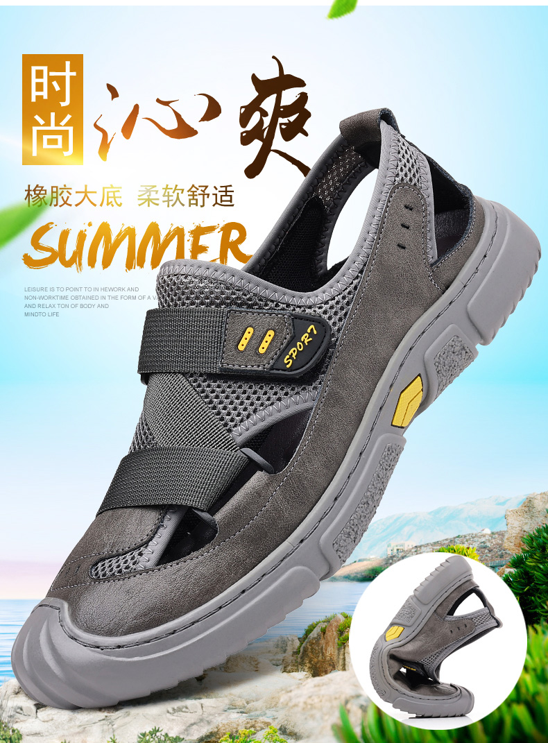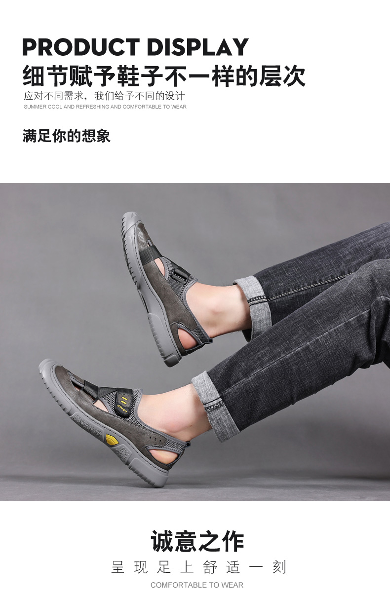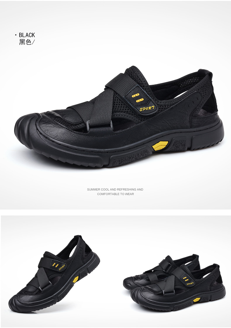 Your location:homeSHOESMITHGenuine Leather Sandals for Men, Summer Breathable Closed-toe Shoes, Comfort Walking Shoes for Middle-aged and Elderly Father