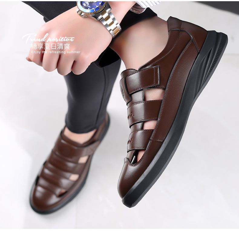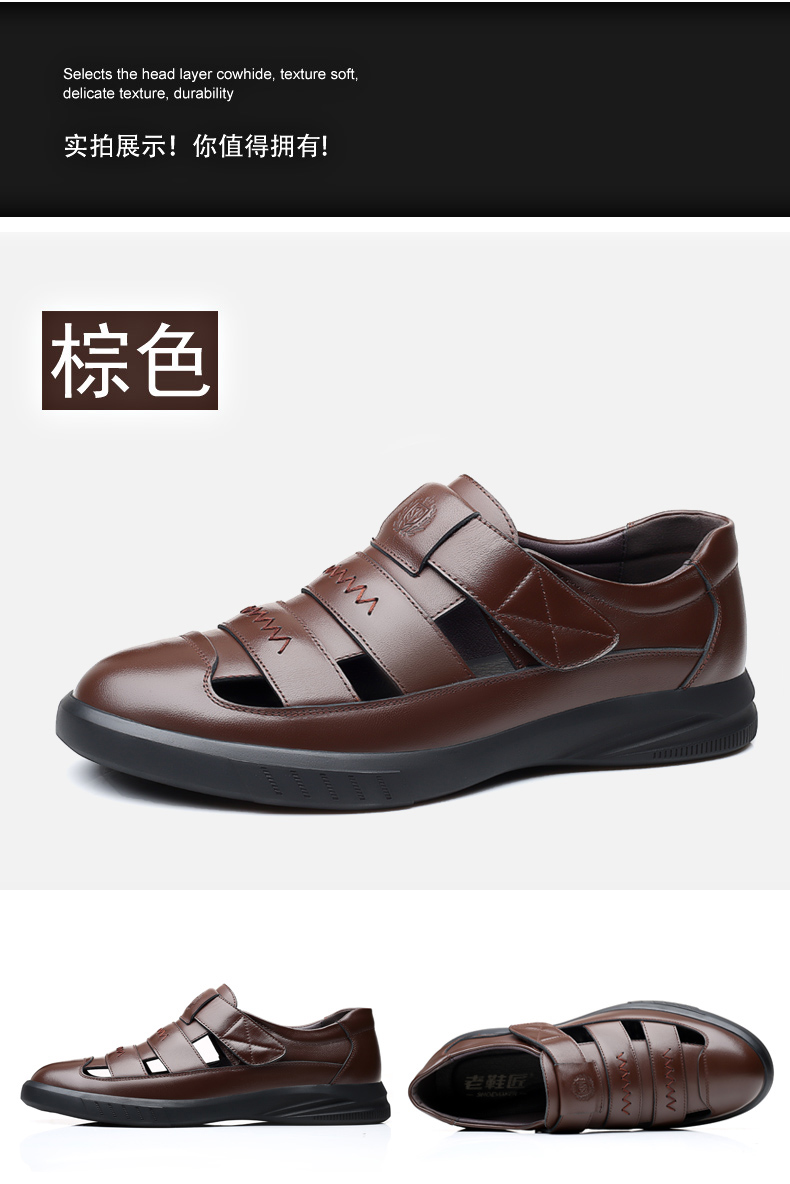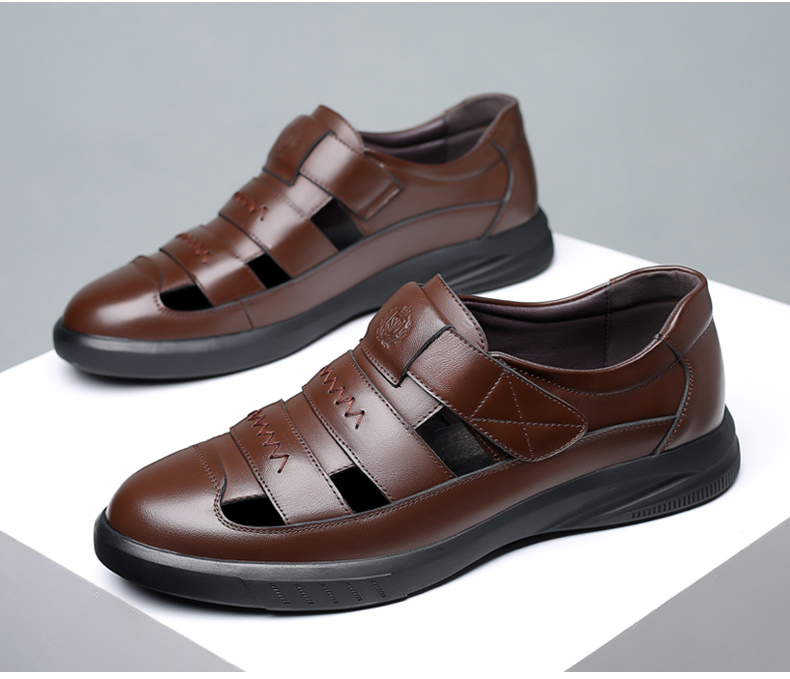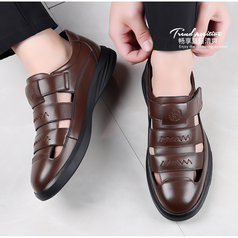 Your location:homeSHOESMITHOld Cobbler Men's Shoes 2022 Summer New Genuine Leather Breathable Business Casual Leather Shoes Men's Perforated Sandals for Dad