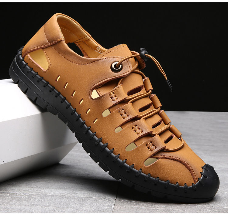Your location:homeSHOESMITHOld Cobbler Men's Shoes 2022 Soft-Soled Sandals Outdoor Casual Genuine Leather Breathable Shoes Summer Hollow Beach Leather Sandals
