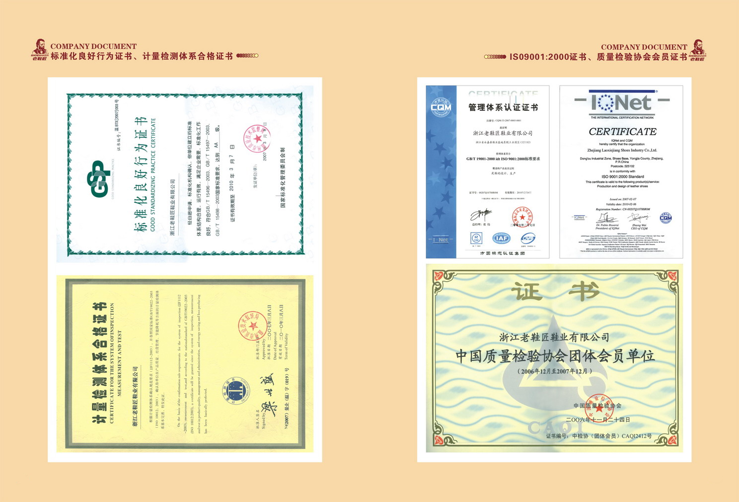 标准化良好行为证书、计量检测体系合格证书/1S09001:2000证书、质量检验协会会员证书