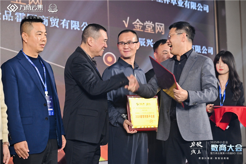 会议期间,浙江老鞋匠鞋业有限公司董事长徐社维登台接受“数智创新平台奖”,并由万商云集董事长王飞亲自颁奖。徐社维董事长结合企业实践,向众多企业家分享了自身如何借助数字营销工具突破传统业务模式,推动业绩增长。他指出:“数字化转型已不是选择,而是生存的必答题。中小企业必须主动拥抱变化,将数字思维融入发展的每一步。”